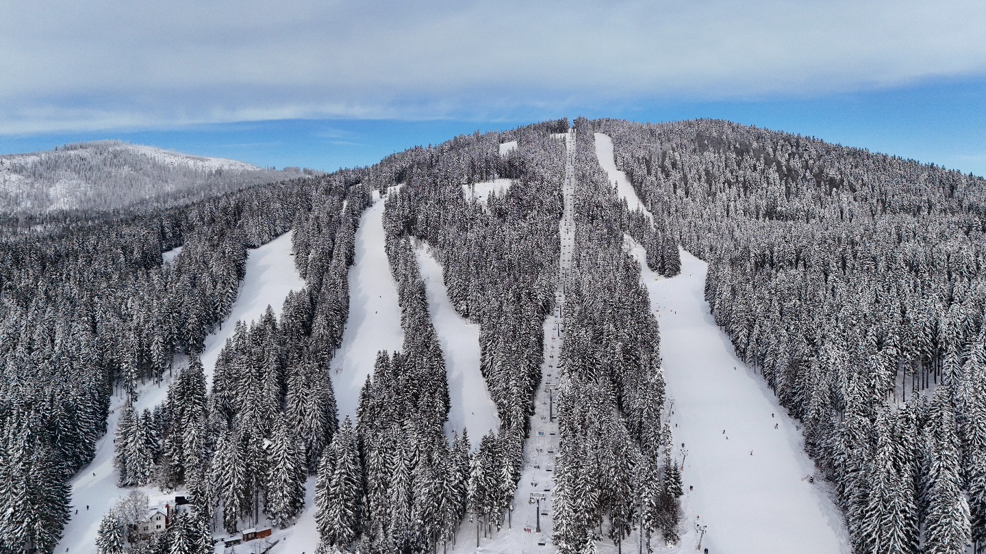 Jarní počasí si vybírá svou daň. Největší lyžařský areál Plzeňského kraje, Ski&Bike Špičák, bojuje s výrazným oteplením a deštěm, který přes noc výrazně zhoršil kvalitu tratí. Nabídka sjezdovek se zužuje. Dnes dopoledne je ještě otevřena horní část trojky Slalomové s přejezdem na dvojku U zalomeného, ale je otázkou, jak dlouho ještě vydrží. Vlek na Spodní Šanci už je vypnutý.