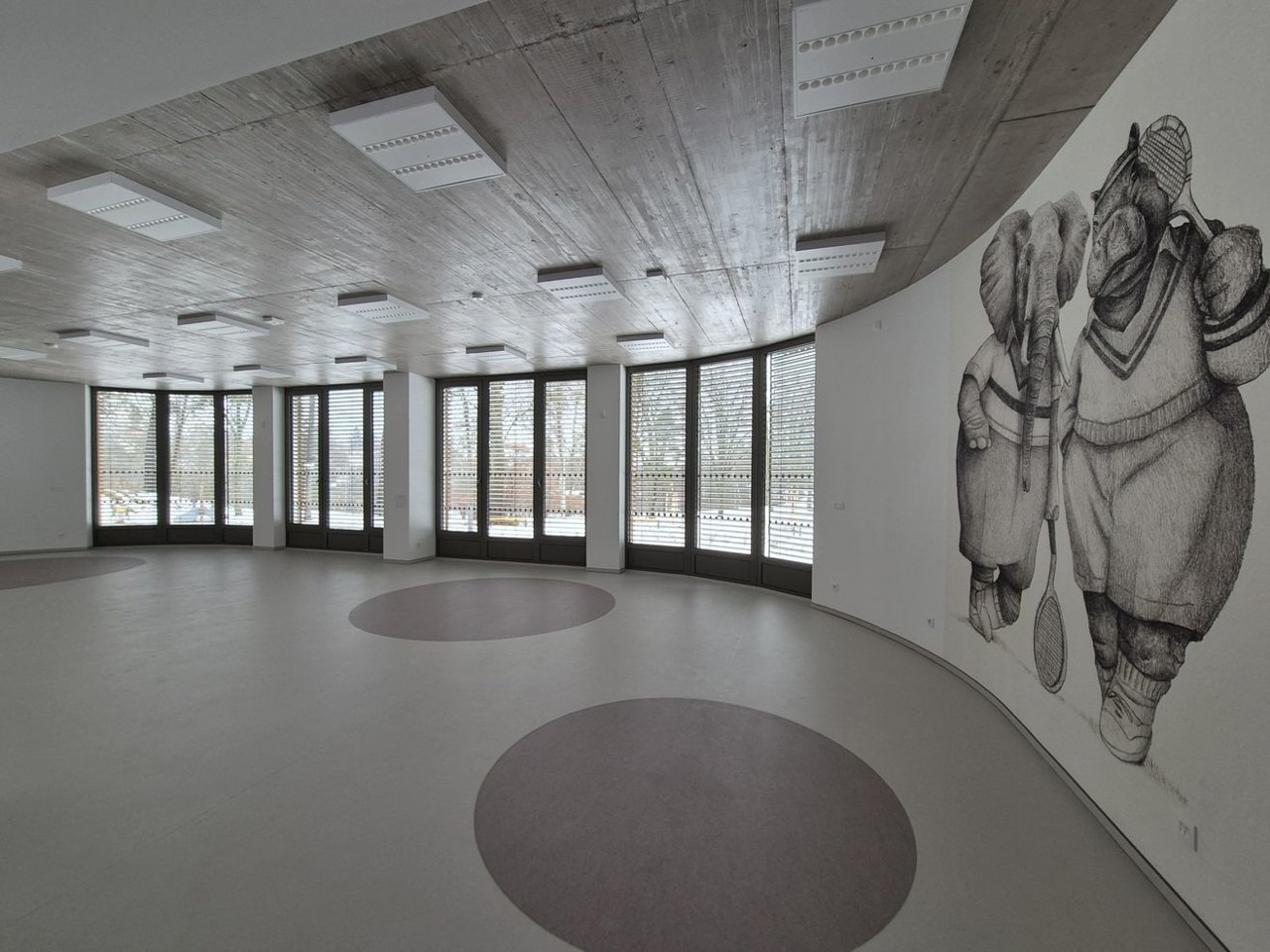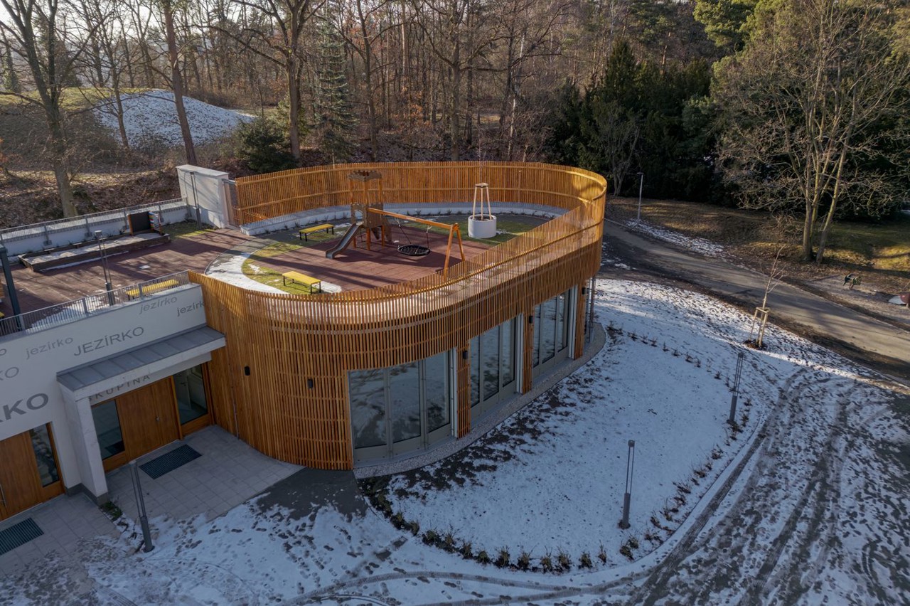 Kromě prostor pro dětskou skupinu objekt zahrnuje také veřejné toalety a bufet. Školička s kapacitou 24 dětí začne fungovat v květnu a pokud vše půjde podle plánu, ještě předtím zahájí provoz i občerstvení. „Stavba se velmi povedla, máme mnoho kladných ohlasů a já věřím, že by mohla zaujmout i odbornou veřejnost, proto jsme se rozhodli, že ji přihlásíme do uvedených architektonických soutěží,“ řekl první místostarosta Jedničky Miroslav Šuma.