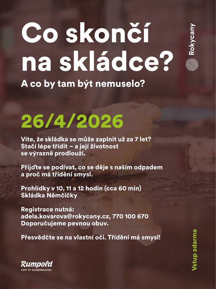 Zajímá vás, co se děje s odpadem poté, co jej vyhodíte do popelnice? Město Rokycany ve spolupráci se společností Rumpold připravilo unikátní příležitost nahlédnout do zákulisí odpadového hospodářství. V sobotu 26. dubna se otevřou veřejnosti brány skládky v Němčičkách.