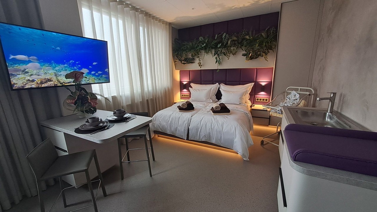 Aby jich bylo co nejméně, rozhodla nemocnice o vybudování druhého rodinného pokoje, který by navíc přinesl ještě vyšší úroveň ubytovacích služeb. „Protože jsme ale zdravotníci a nevěděli jsme jak na to, oslovili jsme raději architekta, který má zkušenosti. Naše nesmělé požadavky ovšem posunul o úroveň výš a výsledek, myslím, stojí za to,“ doplnil primář.
