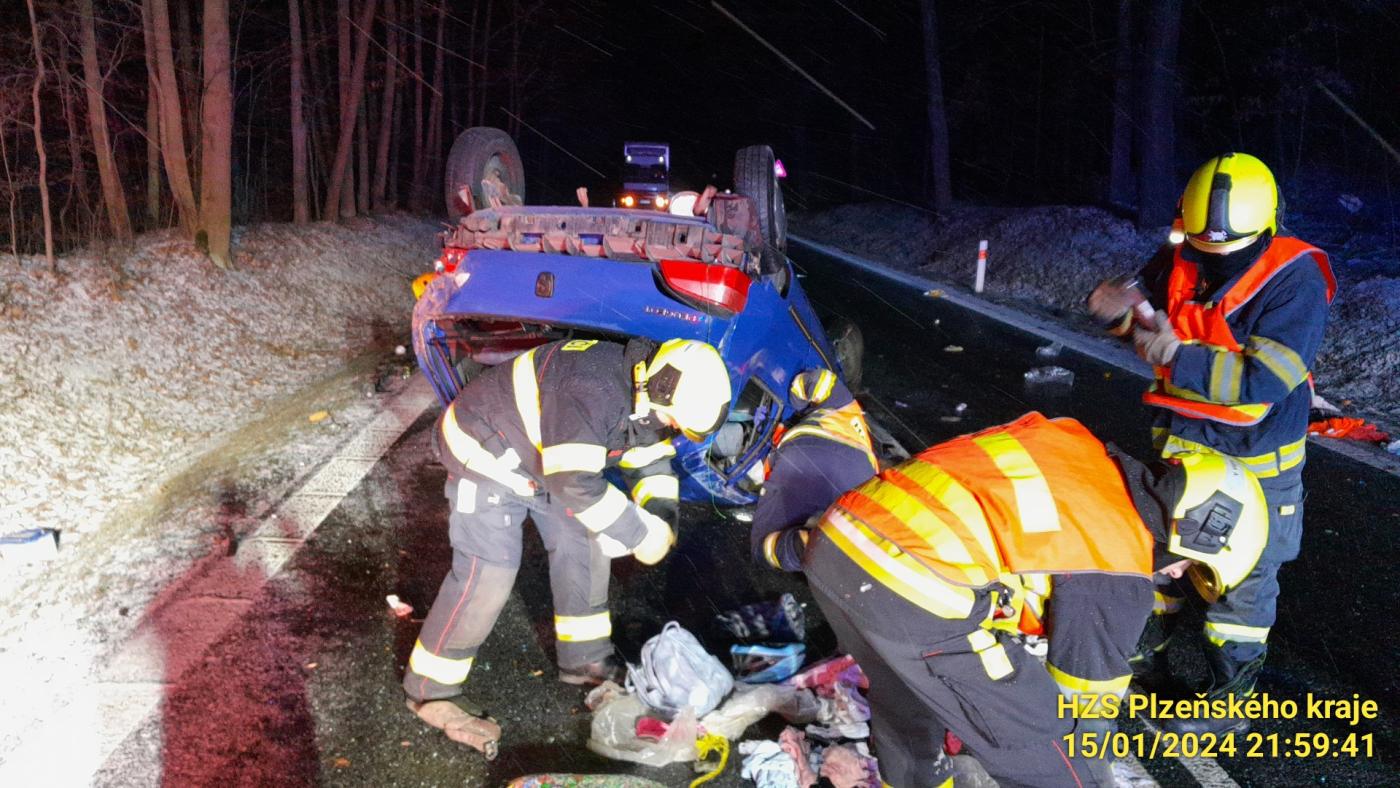 Všechny záchranné složky vyjížděly k nehodě před 22. hodinou. "Řidička jela s vozidlem Peugeot po silnici I/27 ve směru na Kralovice a zhruba 500 metrů za odbočkou na Horní Břízu nepřizpůsobila rychlost dopravně technickému stavu vozovky. S vozidlem dostala smyk vjela do pravého silničního příkopu, kde narazila do stromu a vlivem nárazu bylo vozidlo odmrštěno zpět na silnici, kde skončilo na střeše," popsala policejní mluvčí Eva Červenková.