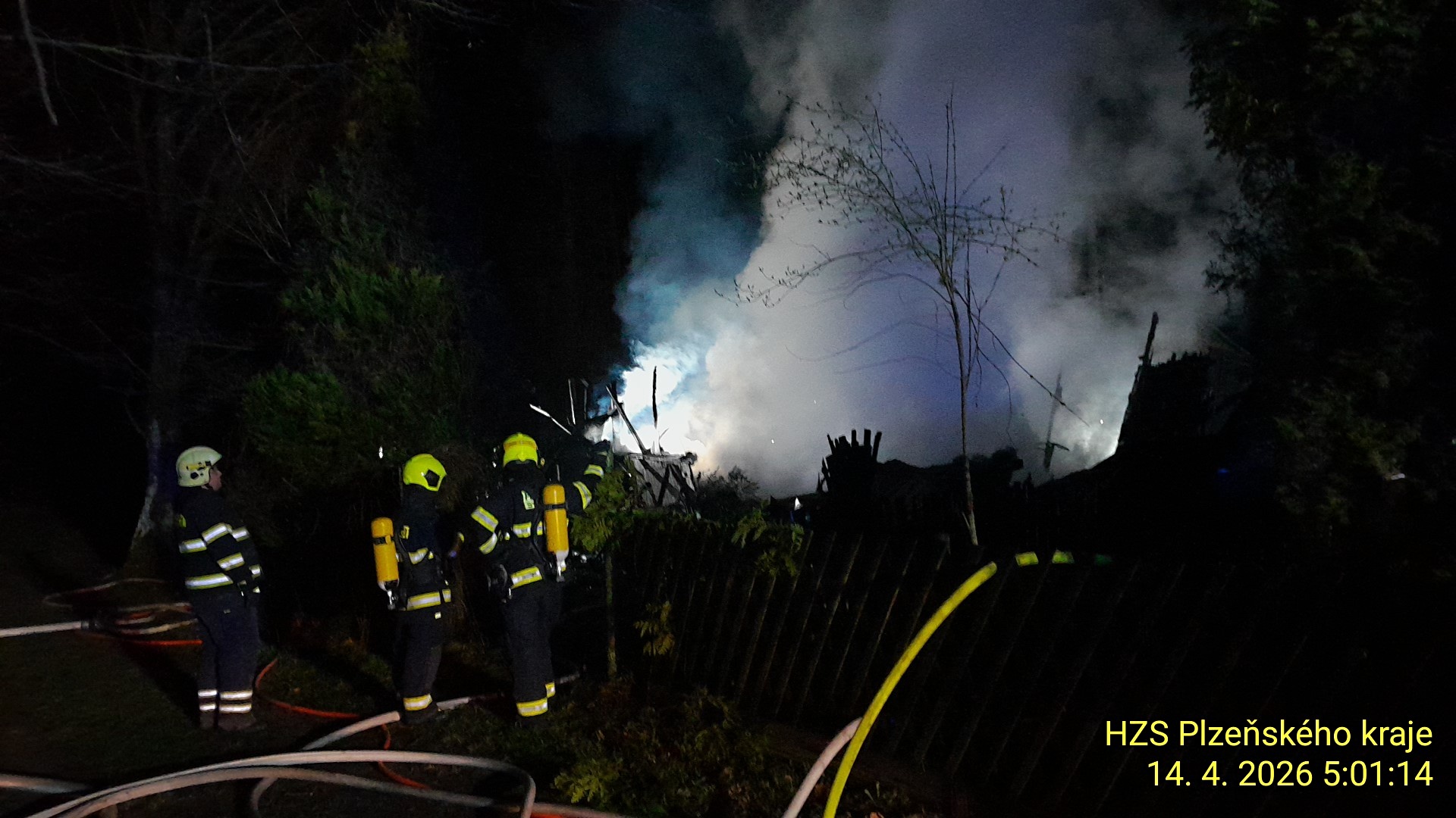 Škodu zhruba pět milionů korun napáchal noční požár chaty v Cheznovicích na Rokycansku. Hasiči museli v průběhu zásahu vynášet propanbutanovou láhev, protože hrozilo riziko exploze.
