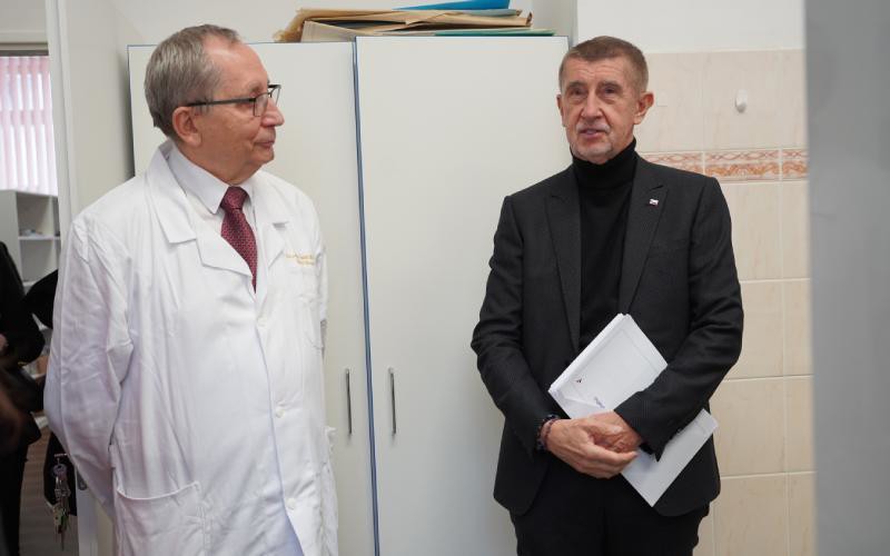 Premiér svou návštěvu zahájil v Karlovarské krajské nemocnici, kde se zúčastnil otevření nového PET centra. Jeho spuštění přináší zásadní posun v diagnostice nádorových onemocnění v regionu. Díky němu nebudou muset obyvatelé cestovat za vysoce specializovaným vyšetřením do vzdálených center mimo kraj. Novými prostory provedl předsedu vlády primář Oddělení nukleární medicíny a PET centra Jan Valeš. Následně proběhla prohlídka heliportu na střeše budovy A, který jako první v České republice disponuje autonomním hasicím systémem oscilační metodou.