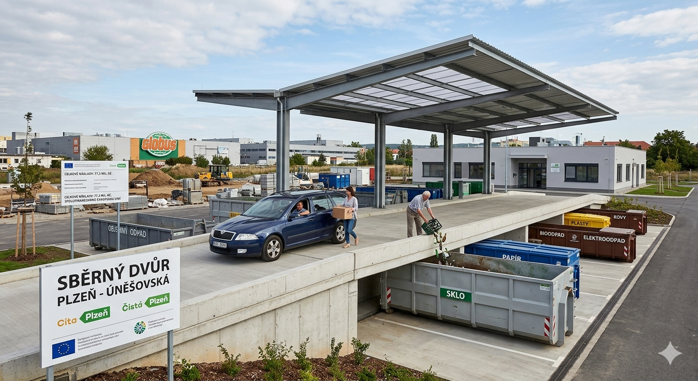 Konec přeplněných kontejnerů a černých skládek na severu Plzně. Město odstartovalo proměnu provizorního sběrného místa v Úněšovské ulici u Globusu v moderní sběrný dvůr. Nové zázemí usnadní Plzeňanům hospodaření s odpady a výrazně zlepší čistotu v okolí. Hotovo bude v prvních měsících příštího roku.
