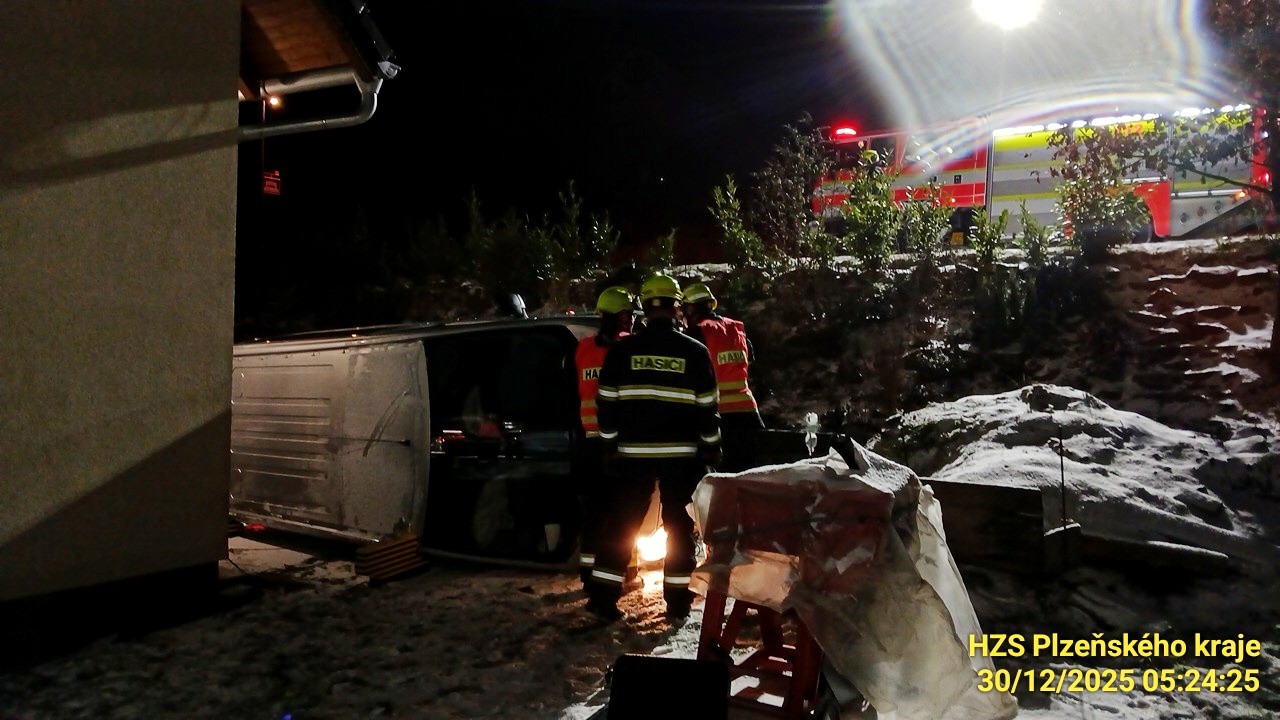 Nehoda se stala krátce po 5. hodině. "Řidič narozený v roce 1991 jel s dodávkou značky Citroën po silnici II/605 ve směru od Vochova na Bněneves a při průjezdu mírné pravotočivé zatáčky v obci Kozolupy dle dosud zjištěných skutečností nepřizpůsobil rychlost jízdy stavu vozovky, uvedl vozidlo do smyku, přejel pravou krajnici a pravý chodník ve směru jízdy a s vozidlem se skutálel ze svahu na pozemek domu," popsal policejní mluvčí Ondřej Hodan.