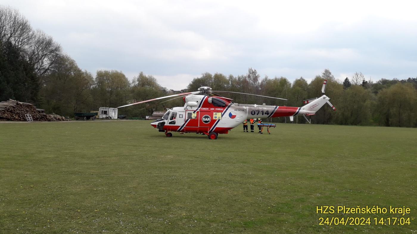 Šestasedmdesátiletý muž se popálil při požáru tújí ve Vejprnicích. Na místo vyjížděly záchranné složky včetně vrtulníku krátce po 13. hodině.