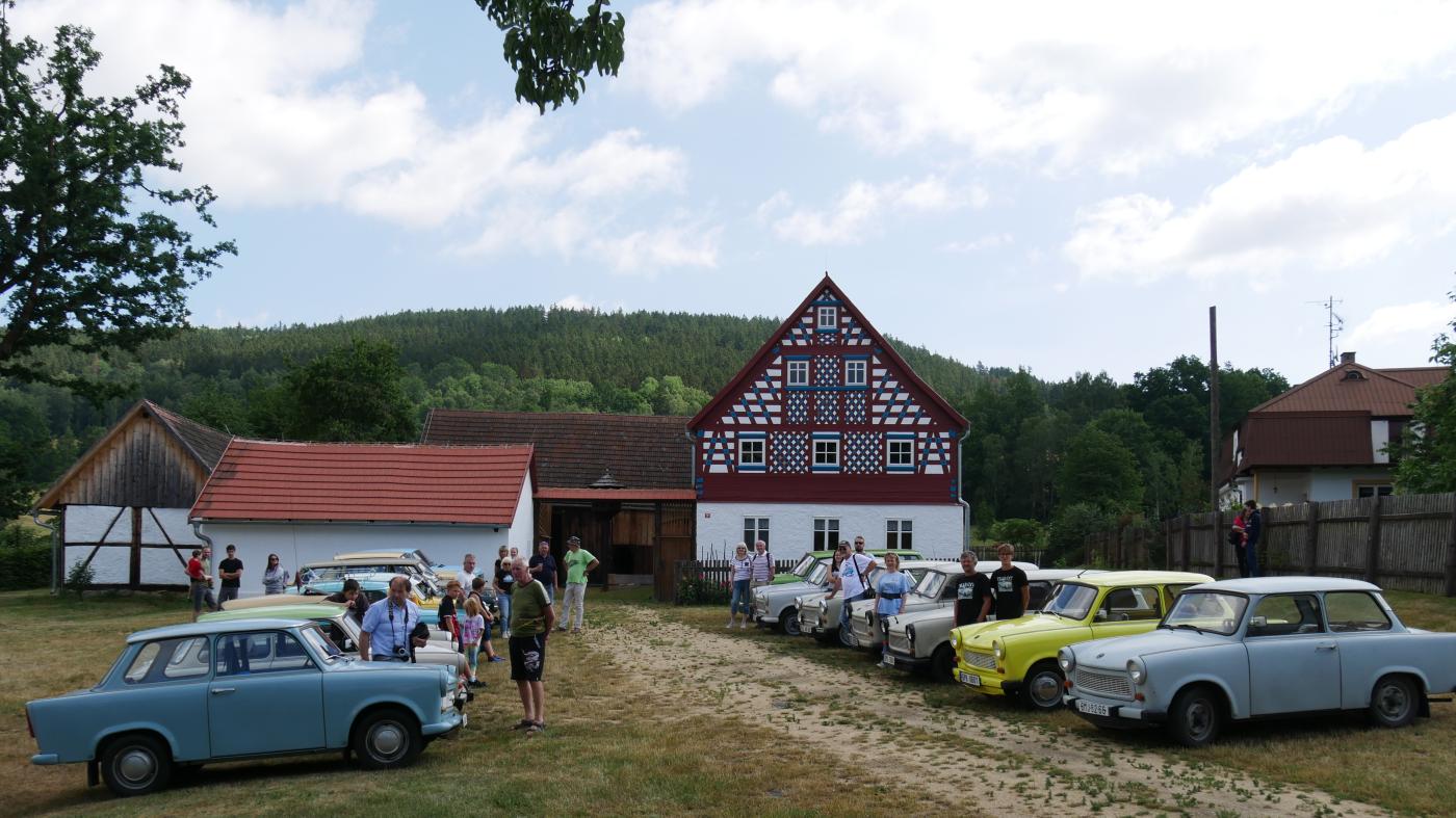 V sobotu ráno se na náměstí v Křimicích sešlo 15 posádek trabantů a wartburgů členů AMK Trabant Plzeň. Pozdravili se s majiteli veteránů, kteří zrovna přijížděli do křimického zámku, aby se zúčastnili Jízdy Jiřího Kristiána Lobkowicze a výstavy zámeckém parku. Následovala krátká rozprava a pak už se členové Trabantklubu vydali směrem na Stříbro a Planou u Mariánských Lázní. Zde se připojily další posádky.