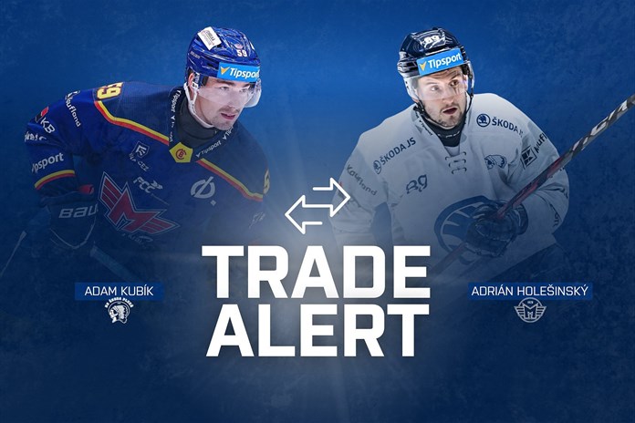 Hokejová Plzeň a České Budějovice měnili hráče. Na západ Čech se stěhuje útočník Adam Kubík, opačným směrem pak míří slovenský reprezentant Adrián Holešinský. Extraligové kluby o dohodě informovaly na svých webech.