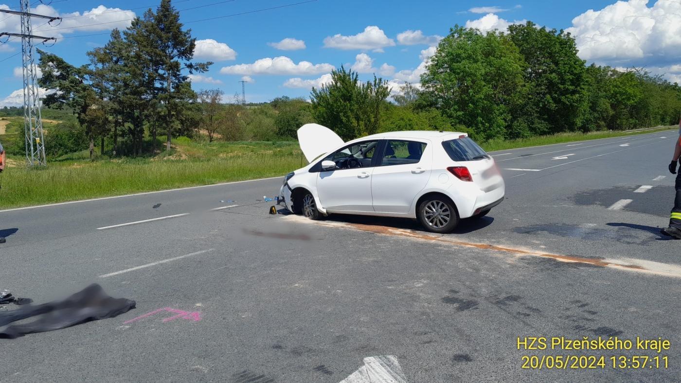 První nehoda se stala asi hodinu po poledni v ulici Osoblaho na okraji Dobřan. "Řidička osobního vozu Toyota narozená v roce 1961 vyjížděla z místní komunikace a chtěla odbočit vlevo na Dobřany. Dle dosud zjištěných skutečností zřejmě nedala přednost motorkáři, který jel na motocyklu Harley Davidson ve směru od Dobřan. Došlo k jejich střetu," popsala policejní mluvčí Eva Červenková.