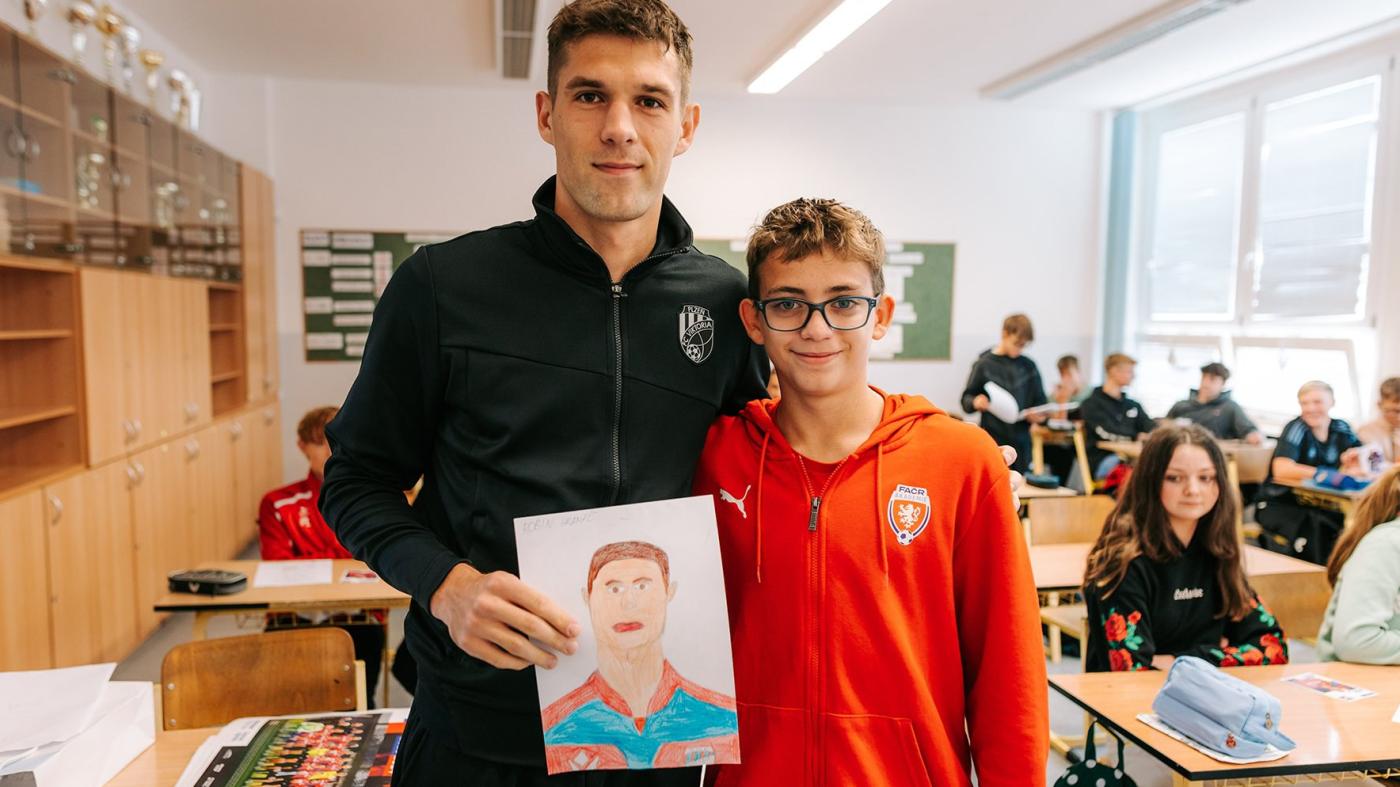 Jako poděkování vyrazili vybraní hráči dětem osobně poděkovat a předat jim vstupenky. Například Robin Hranáč zamířil na 33. ZŠ, kde to sám zná. „Hlavně mě překvapilo, jaké množství portrétů děti nakreslily a byly fakt povedené. Během návštěvy jsem všem poděkoval, odpověděl na řadu dotazů, rád jsem se i podepsal. Bylo to příjemné setkání,“ říká obránce, jenž je společně s Pavlem Šulcem patronem nedělního utkání.