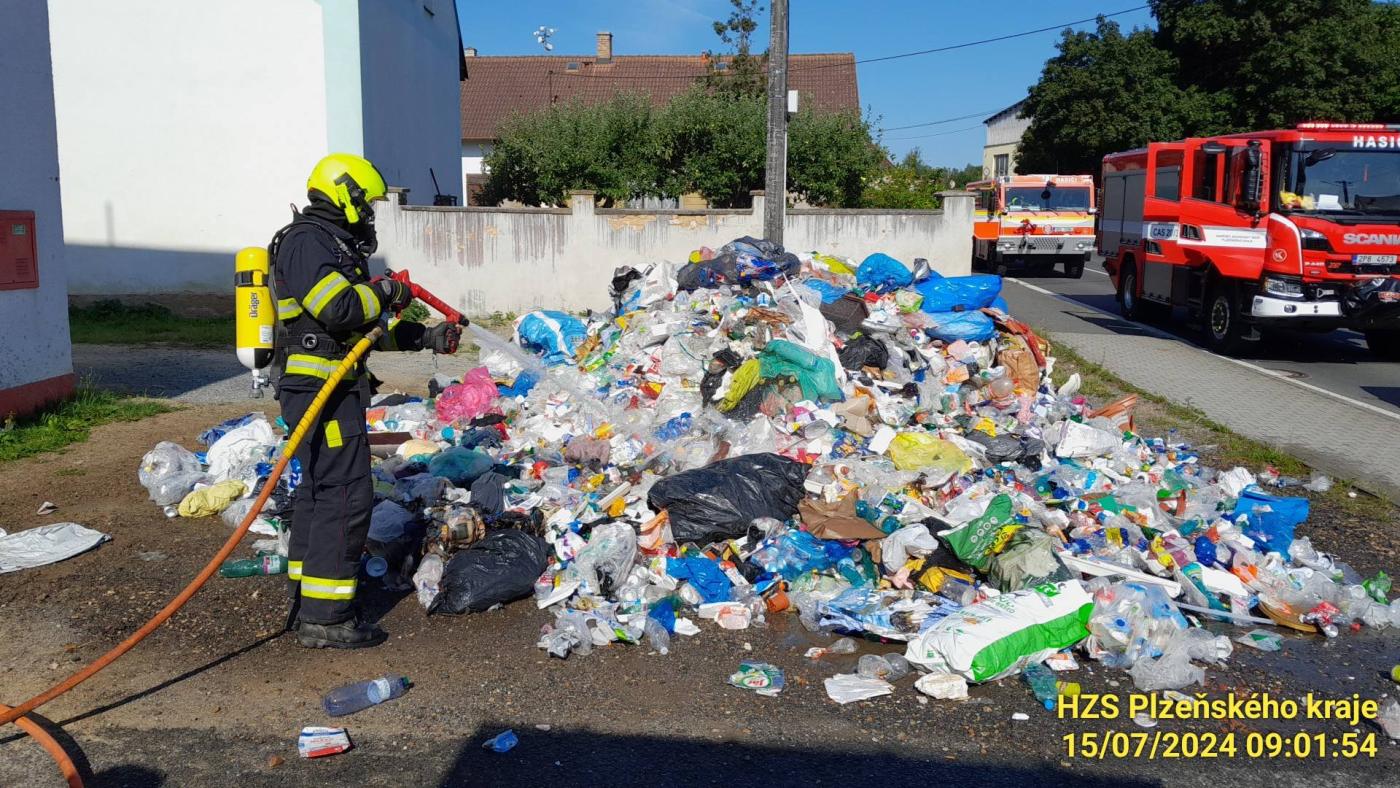 Požár byl nahlášený krátce po 8. hodině. "Popelářské vozidlo zastavilo před místní hasičskou jednotkou dobrovolné jednotky Zruč-Senec. Místní hasiči jedním vysokotlakým proudem tuto doutnající hromadu odpadků prolily vodou. Na místo také dojížděla jednotka HZS Plzeň Košutka, která již zasahovat nemusela. Vše bylo důkladně zkontrolováno termokamerou," popsal mluvčí krajských hasičů Michal Holeček s tím, že na vozidle nevznikla žádní škoda.