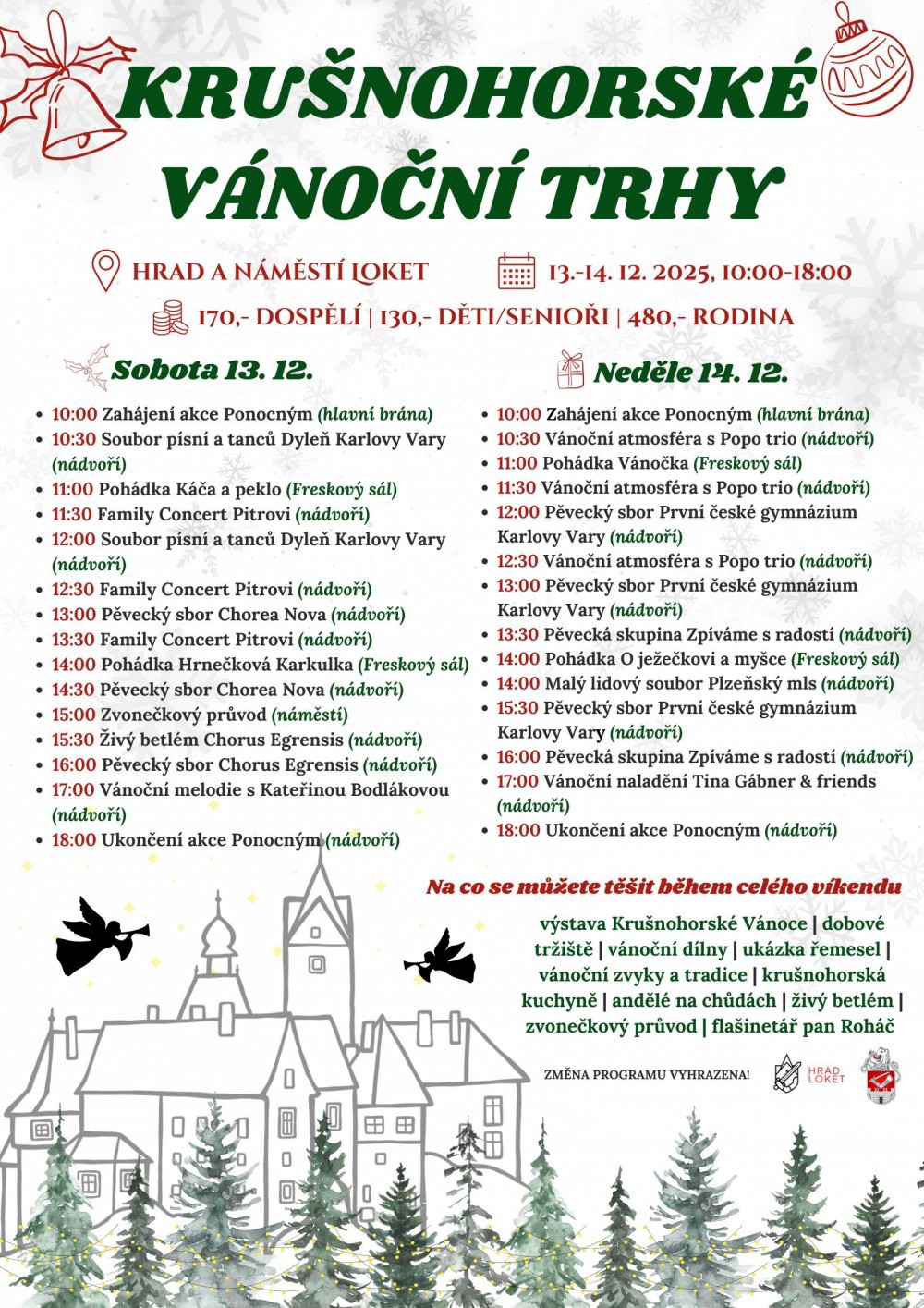Součástí programu bude také výstava Krušnohorské Vánoce. Ta návštěvníkům přiblíží zvyky, řemesla a tradice, které k adventnímu času na západě Čech patří.
