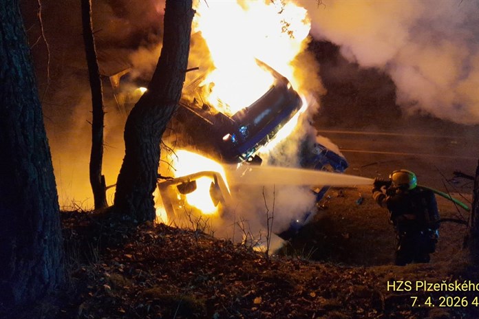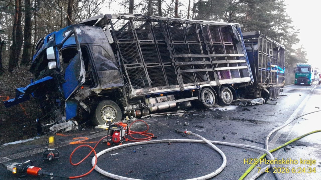 Podle mluvčího hasičů Petra Poncara se nehoda stala na 34,5 kilometru silnice zhruba na úrovni Holýšovského rybníku. "Došlo k nehodě a následnému požáru nákladního a osobního automobilu. K hašení obou vozidel jsme nasadili čtyři vodní proudy. Po uhašení požáru jsme z osobního vozidla vyprostili jedno tělo," dodal.