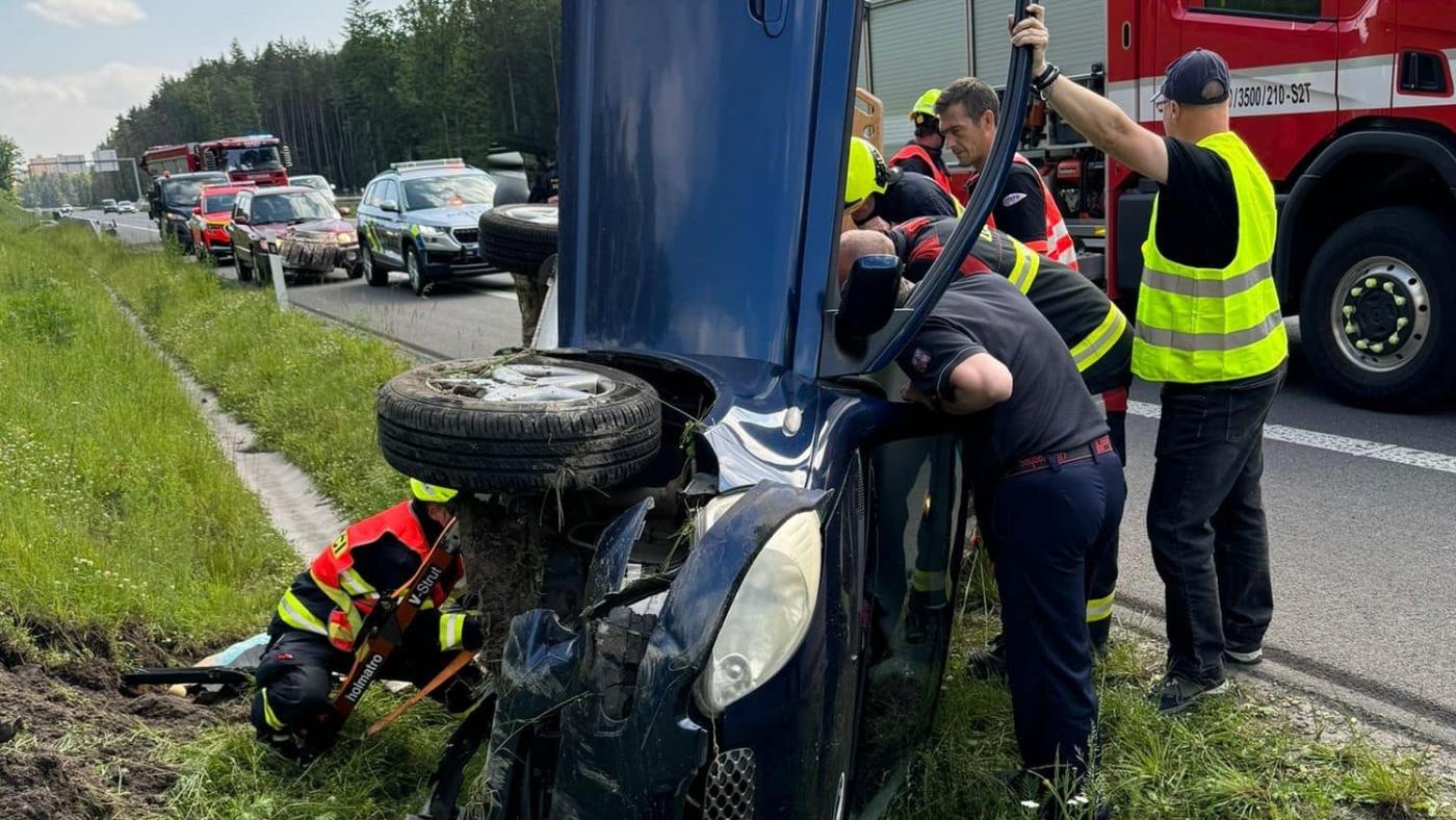 K nehodě došlo v úterý krátce před čtvrtou hodinou odpoledne na silnici I/27. "Podle dosud zjištěných skutečností jel řidič ročník 1981 nákladního vozidla značky Peugeot Boxer zařazen v pravém jízdním pruhu ve směru od Plzně na Třemošnou, kdy mu za jízdy z korby vozu spadlo na vozovku zahradní kolečko. Dvaasedmdesátiletá řidička osobního vozidla značky Toyota, která jela za nákladním automobilem, strhla ve snaze vyhnout se střetu řízení, vyjela vlivem smyku mimo komunikaci a převrátila se s vozidlem na bok," popsala policejní mluvčí Michaela Raindlová.