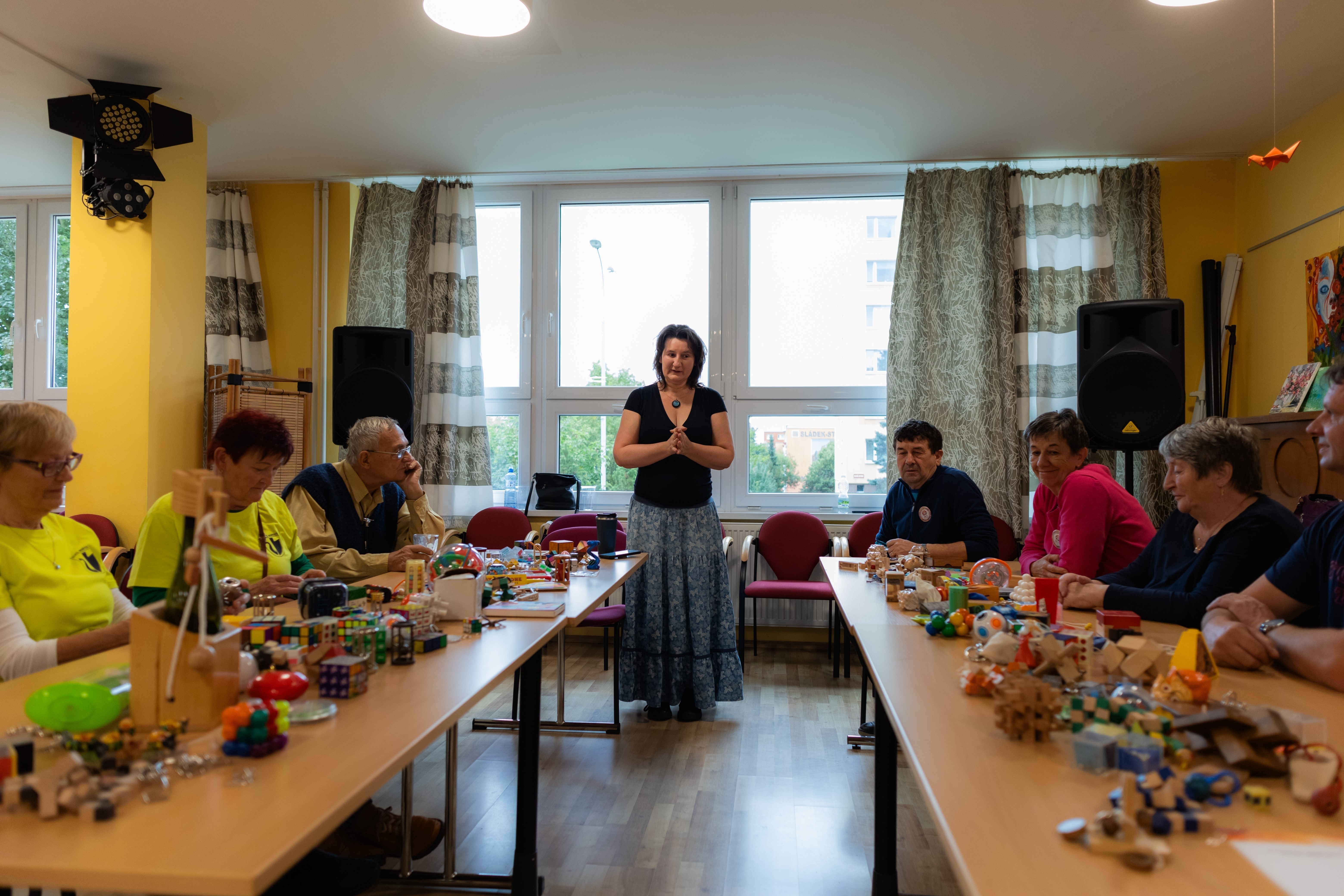 Neděle byla věnována workshopům, na kterých si aktivní senioři mohli vyzkoušet country tance s tanečníky ze souboru Slunečnice, mohli dumat nad řešením nejrůznějších hlavolamů – od Rubikovy kostky, přes Ježka v kleci, až po zcela neznámé a ojedinělé hlavolamy, učili se pracovat s umělou inteligencí v mobilu, vyrábět smaltované lžičky a také navštívili hostitelskou instituci – plzeňský TOTEM.