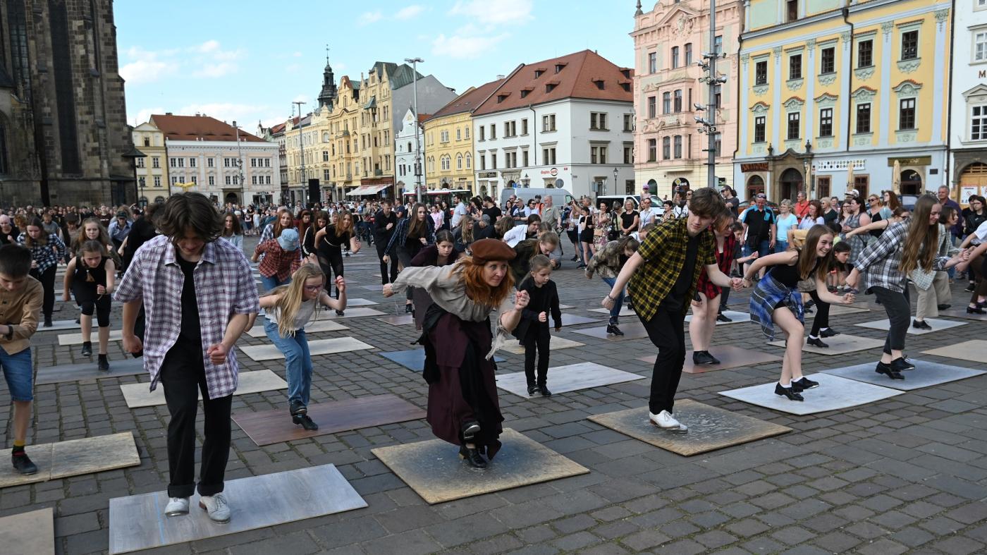„Hned v úvodu Plzeňského festivalu stepu zveme diváky na flash mob na náměstí Republiky. Více než stovka účastníků všech věkových kategorií tentokrát představí stepařský chorus Shim Sham, který je hymnou stepařů po celém světě. Pochází z roku 1927 a jeho autory jsou Leonard Reed a Willie Bryant,“ uvedla Kamila Borovská lektorka a choreografka plzeňského Step by step studia, které Plzeňský festival stepu organizuje.