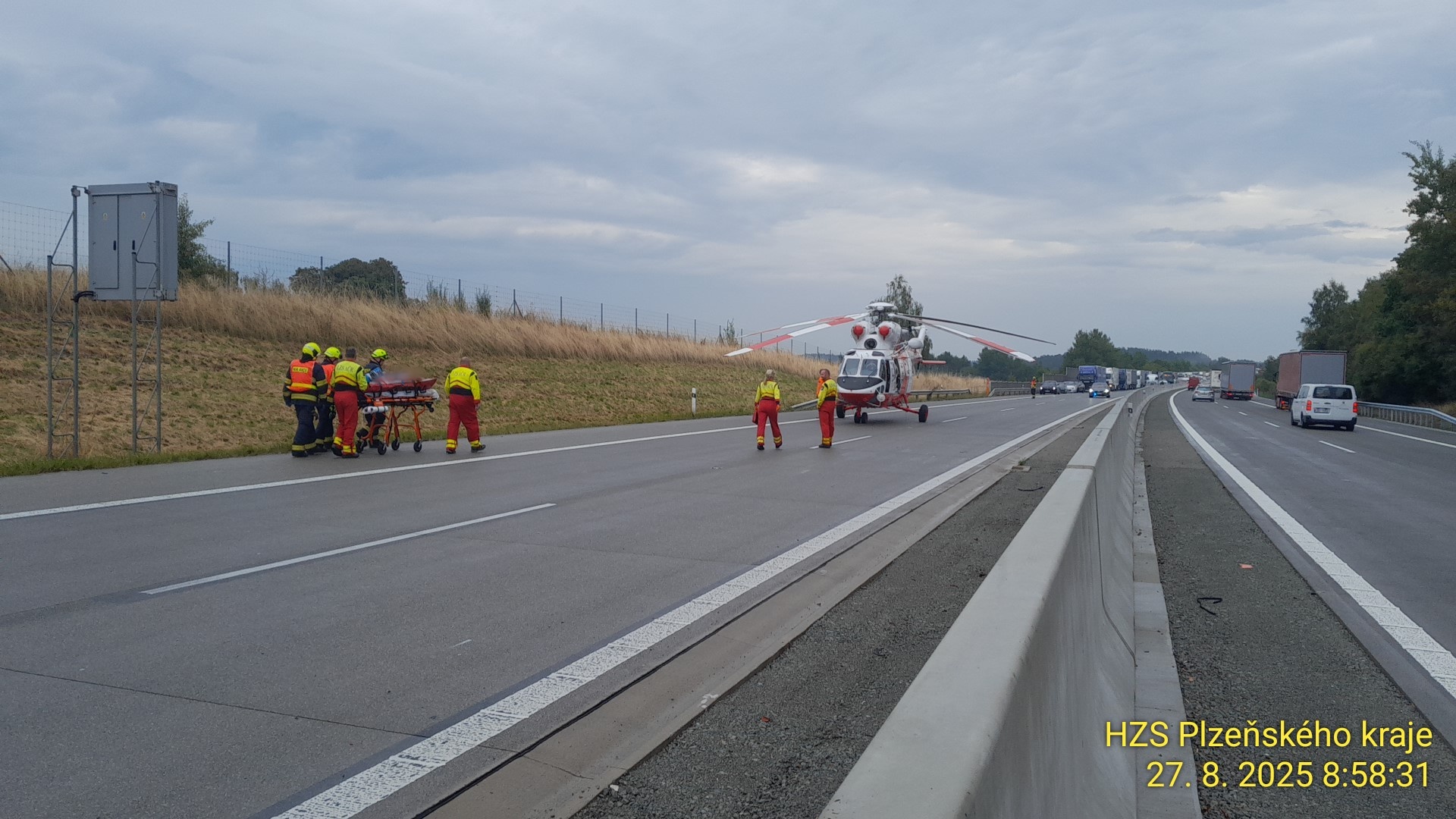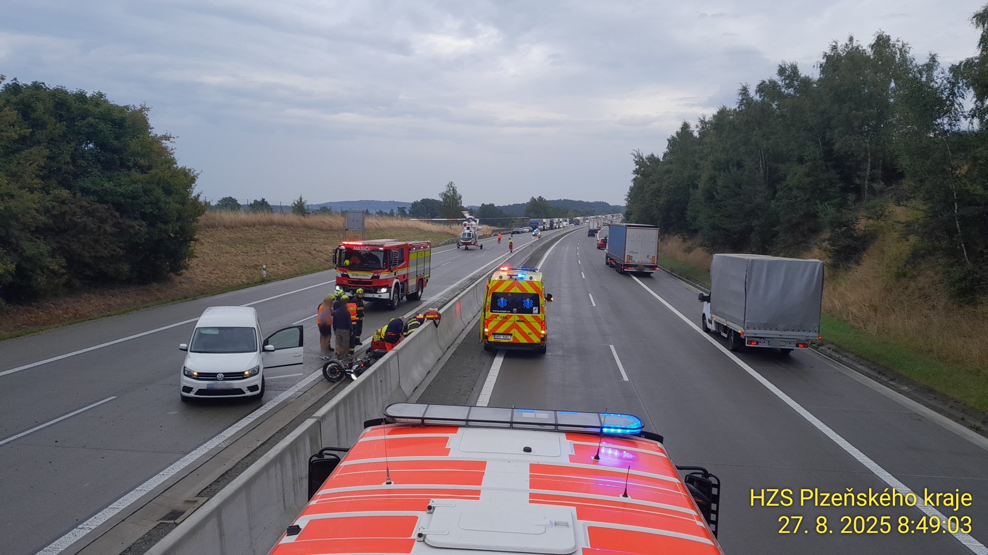 Na 125. kilometru dálnice D5 na Tachovsku ve směru z Plzně na Rozvadov havaroval asi padesátiletý motocyklista. Kvůli přistání záchranářského vrtulníku musela být dálnice v místě nehody uzavřena v obou pruzích.