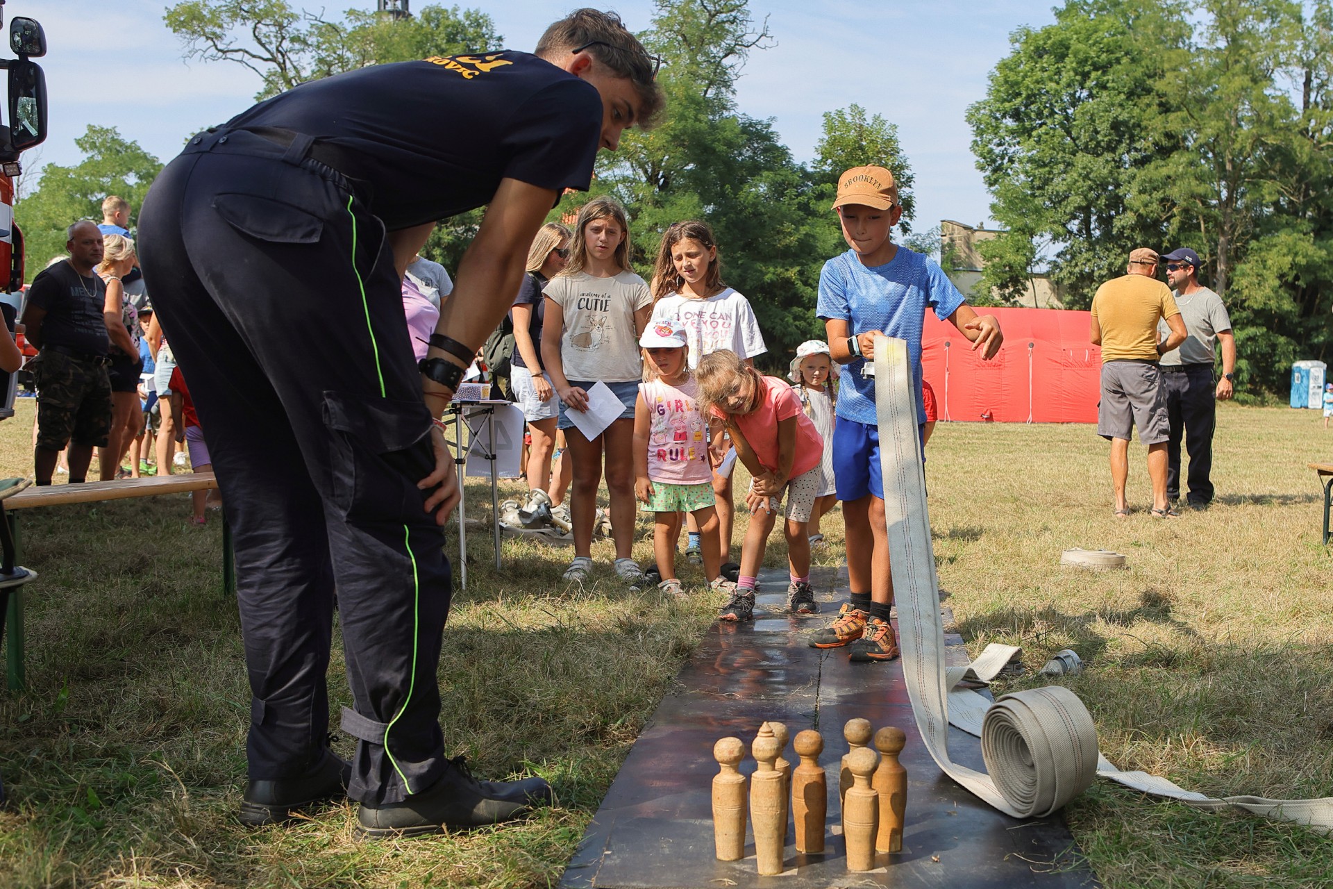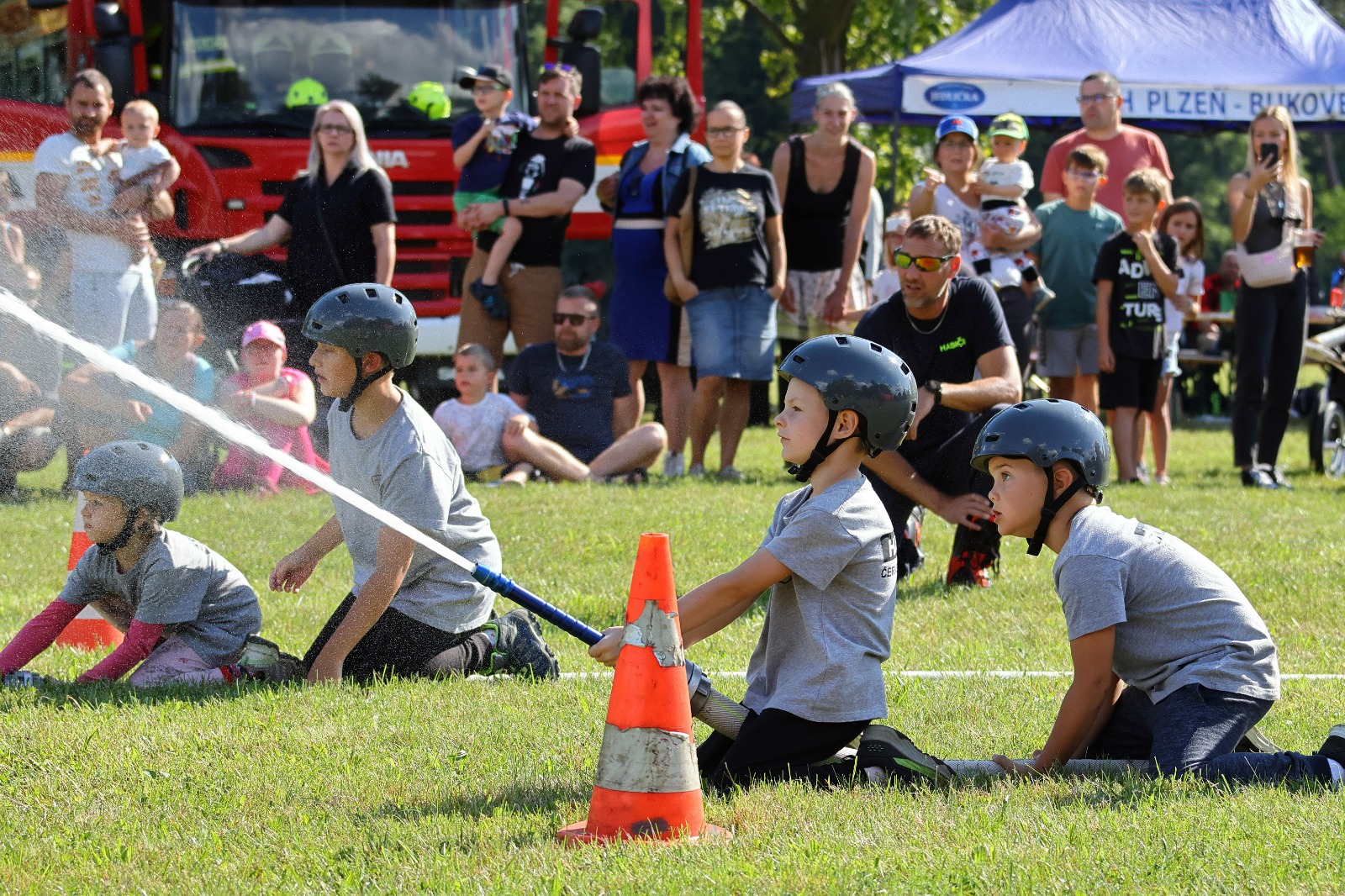 Na louce u sv. Jiří byla k vidění historická technika, současná technika, evakuační autobus a také záchranný člun. Hasiči přivezli ukázat i vozidlo, které se používá například při povodních v obtížně přístupných místech, jde o Pragu V3S. Děti si vozový park mohly nejen prohlédnout, ale také se do vozidel posadit a dozvěděly se řadu praktických informací. Připraven byl soutěžní okruh, který měl celkem 8 stanovišť. Děti hrály například speciální kuželky s hadicí, stříkaly proudnicí na terč, rozpojovaly a spojovaly hadice, překonávaly překážkovou dráhu nebo skákaly v pytli. Za splnění úkolů získali soutěžící odměnu. Připraveny byly i doprovodné disciplíny, děti si mohly vyzkoušet některé z důležitých uzlů nebo malovat. K vidění byl požární útok mladých dobrovolných hasičů. A nejen to. „Na závěr mohli diváci sledovat hašení požáru domečku z kartonu mladými hasiči. Děti si tak reálně vyzkoušely, jak takové hašení probíhá,“ popsal starosta Sboru dobrovolných hasičů Plzeň Doubravka Roman Svoboda.