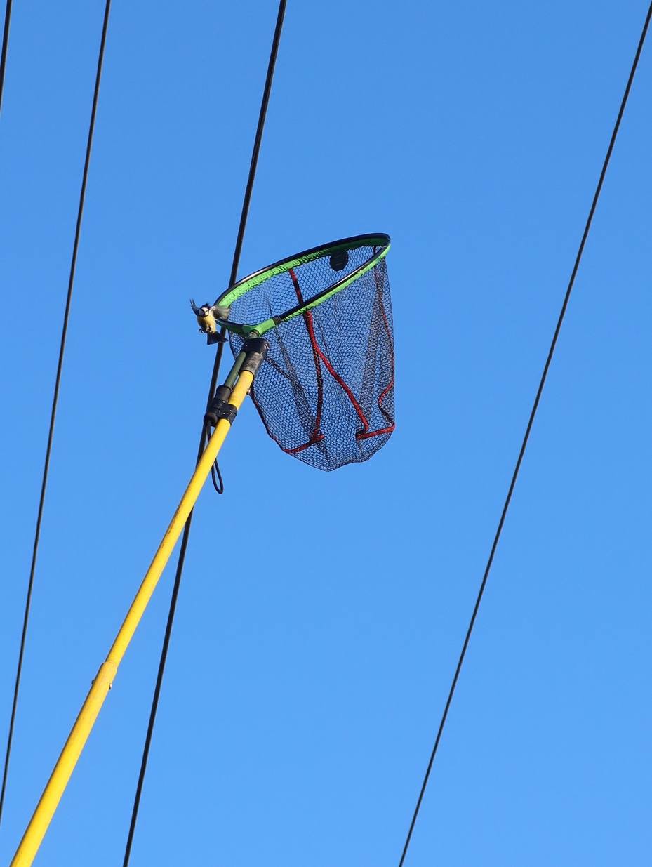 Záchrana se neobešla bez komplikací – sýkora se ve stresu bránila a dostat ji bezpečně do připraveného podběráku vyžadovalo několik pokusů. Nakonec se však podařilo vlasec uvolnit, ptáček se vymotal a k radosti všech přítomných okamžitě odletěl do bezpečí blízkých stromů.