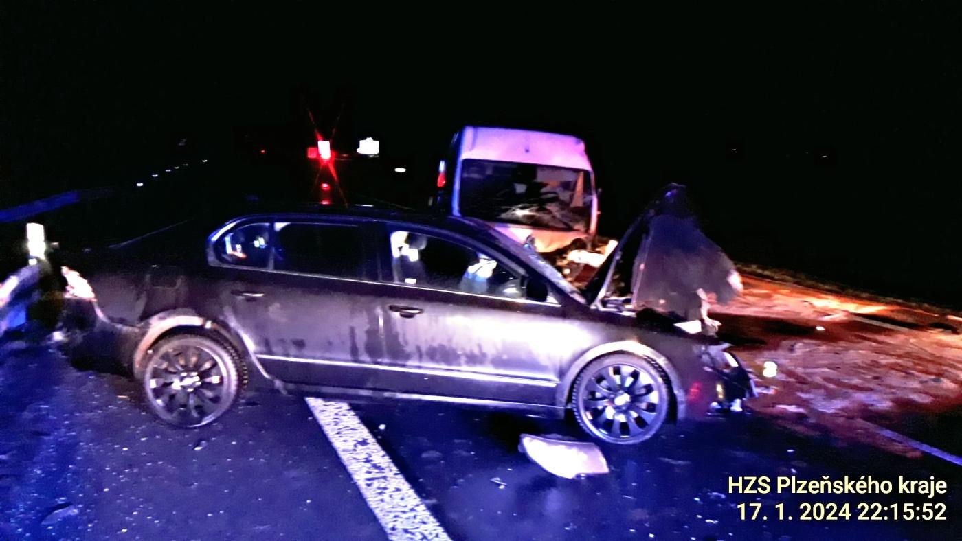 Podle policejní mluvčí Dagmar Brožové jel před devátou hodinou večer řidič ročník 1992 s vozidlem tovární značky Fiat Ducato po komunikaci I. třídy č. 27 ve směru od obce Švihov na obec Červené Poříčí. "Při projíždění mírné levotočivé zatáčky vlivem únavy usnul a s vozidlem přejel do protisměru, kde se čelně střetl s protijedoucím vozidlem tovární značky Škoda Superb řidičky ročník 1973. Po střetu bylo vozidlo Škoda odraženo na svodidla," uvedla.