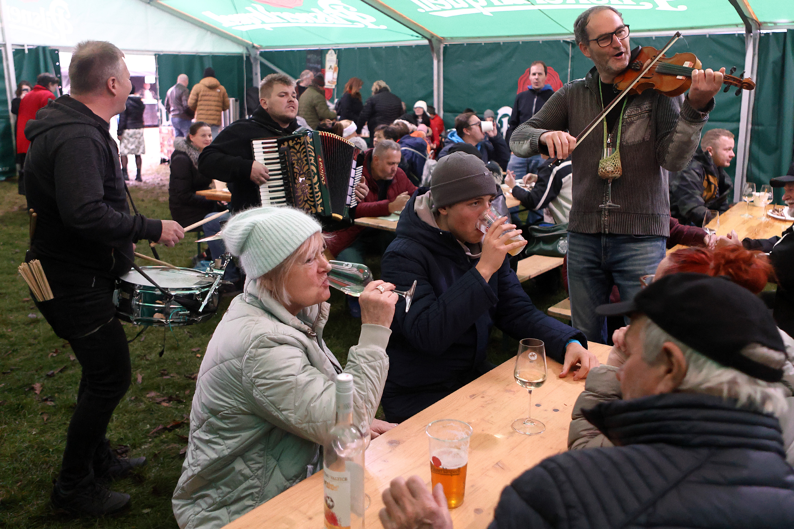 Součástí Svatomartinské husy byl také doprovodný program. Zahrála cimbálová hudba Alexandra Vrábela, Perla Revival a Strašlivá podívaná. Na pódiu i ve vyhřívaném stanu pak probíhaly řízené degustrace vín.