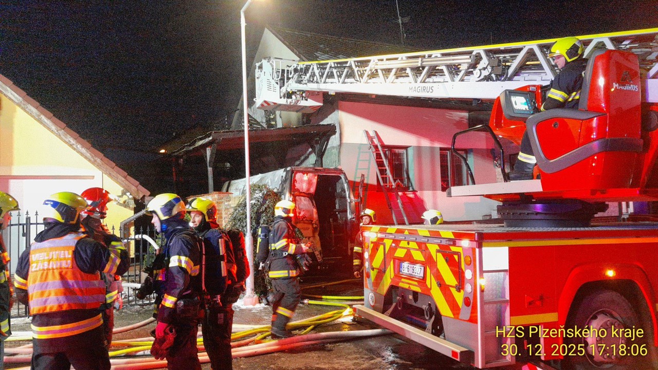V Tlučné na severním Plzeňsku hořela dnes odpoledne obytná dodávka stojící pod přístřeškem rodinného domu. Oheň se částečně přenesl i na sousední obytný dům. Nikdo nebyl zraněn, škoda bude minimálně milion korun.