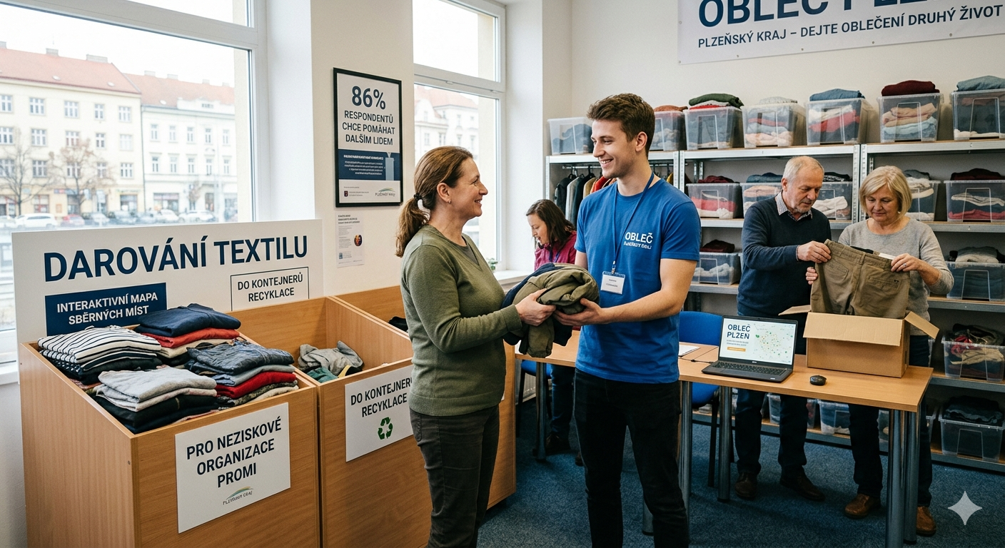Obyvatelé Plzeňského kraje kladou při vyřazování oblečení čím dál větší důraz na smysluplnost a pomoc druhým. Podle aktuálního průzkumu agentury Ipsos pro projekt Obleč Plzeňský kraj se hned 86 % respondentů snaží vytříděný textil vrátit zpět do oběhu, aby mohl dále sloužit lidem v nouzi nebo najít nové využití. Region navíc vyniká nejvyšší ochotou k dalšímu prodeji nošených oděvů v rámci celé České republiky. Nový portál s interaktivní mapou nyní lidem usnadňuje cestu k ekologickému nakládání s textilem a propojuje sociální pomoc s udržitelným životním stylem.