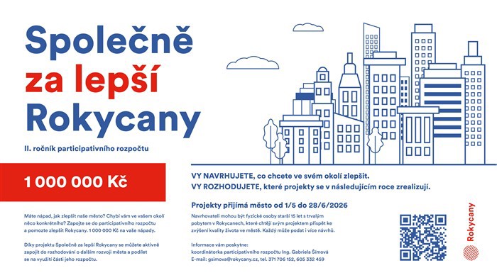 Máte nápad, jak vylepšit Rokycany? Město otevírá druhý ročník participativního rozpočtu Společně za lepší Rokycany a dává obyvatelům možnost přímo rozhodnout o investicích do veřejného prostoru. Na realizaci vítězných projektů, které navrhnou sami občané, radnice vyčlenila jeden milion korun.