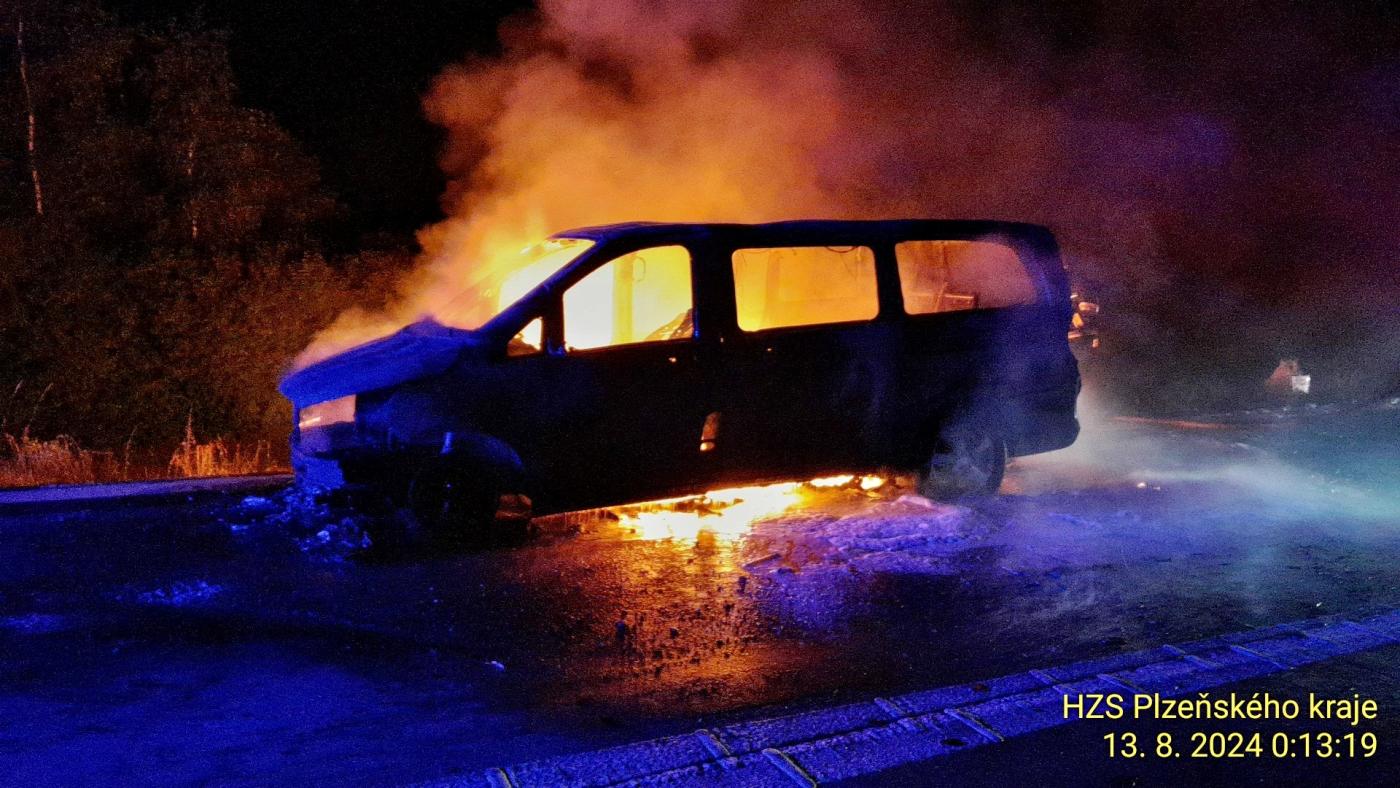 Nepříjemný zážitek mají za sebou tři lidé, kteří v noci z pondělí na úterý cestovali ve vozidle po dálnici D5. Přímo za jízdy jim vozidlo začalo hořet.
