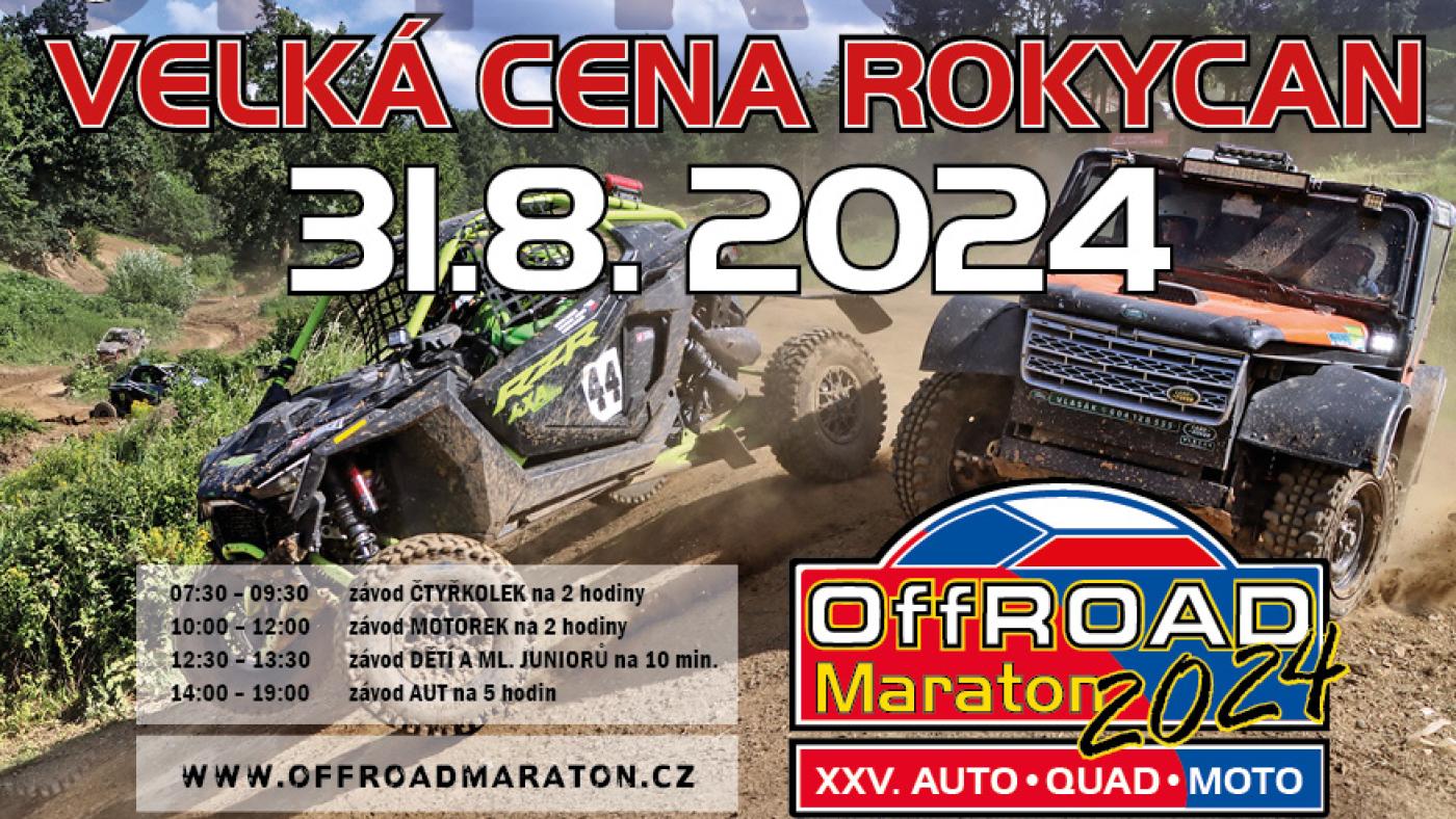 V sobotu 31. srpna ovládnou Rokycanské mokřady jezdci na motorkách, čtyřkolkách a v autech. V rámci pátého dílu vytrvalostního seriálu Offroad maraton se bude závodit o Velkou cenu Rokycan v čele s jezdci ze slavné Rallye Dakar. Diváci budou moci fandit u trati i obdivovat stroje všech závodníků v depu. Rokycanské mokřady se nacházejí za Vojenským muzeem ve Šťáhlavské ulici.