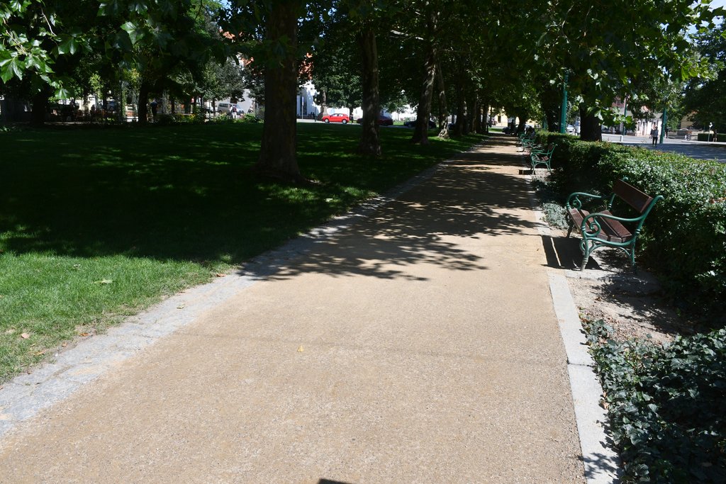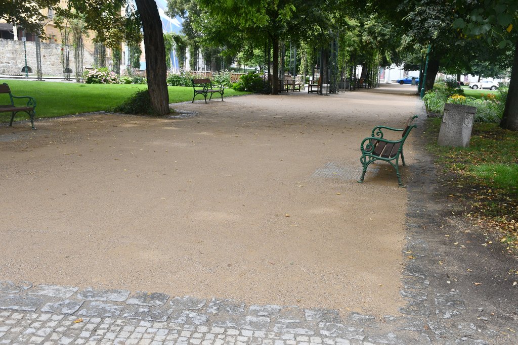 „Klasický mlat, který jsme měli na cestách dosud, tvoří dvě složky – písek a jíl. V nově použitém materiálu park dekor jsou tři frakce kameniva, každá frakce tvoří jednu vrstvu. To činí materiál odolnější. Pro jeho aplikaci jsou také důležité povětrnostní podmínky. Díky tomu, že v posledních dnech více pršelo, vrstva park dekoru se lépe zpevní,“ vysvětluje Radka Kolářová z Úseku městské zeleně Správy veřejného statku města Plzně, která o park pečuje. „Pokud se materiál osvědčí, v což doufáme, použijeme jej i na opravy dalších parkových cest v sadovém okruhu,“ dodává Radka Kolářová.