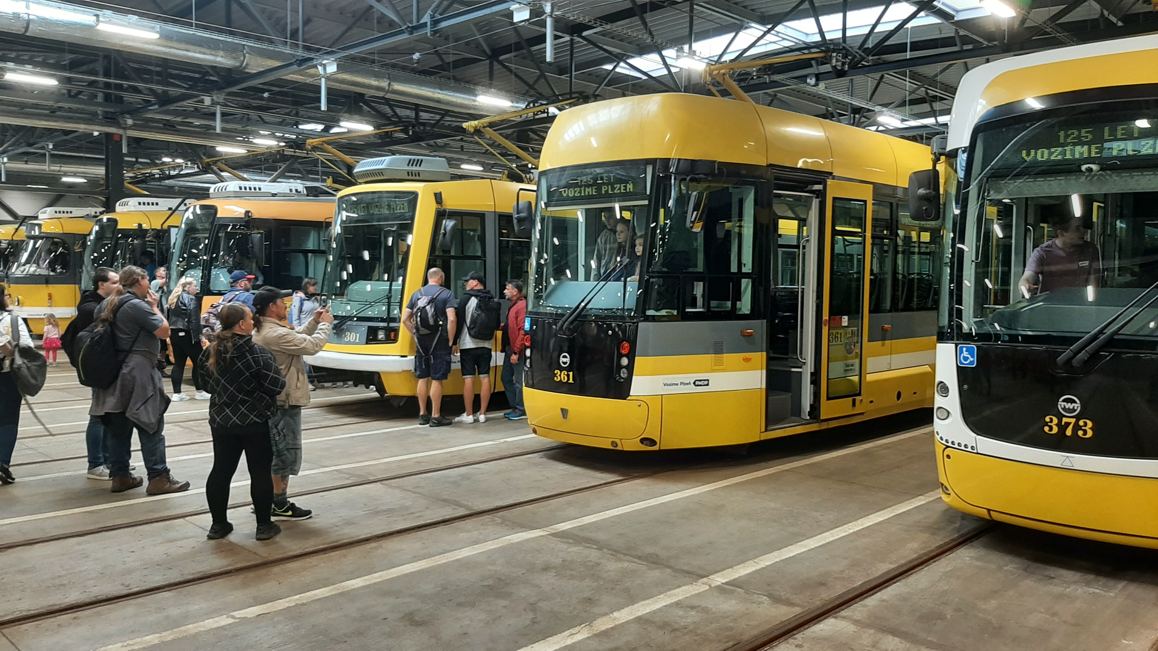 Hlavní program oslav probíhal ve vozovně na Karlově, kde se zabavili malí i velcí návštěvníci. Zaujaly je prohlídky vozovny, bohatý doprovodný program, ale zejména výstava historických vozů. Kromě těch, na které si mnozí pamatovali z dřívějších let, mohli zájemci spatřit i trolejbus Škoda 14 TrE, který jezdil v americkém Daytonu v Ohiu. Škodovka trolejbusy do města v Ohiu dodávala od roku 1994 do roku 1998 a dodáno bylo do USA z ČR celkem 330 trolejbusů ve formě stavebnic, jejichž finální montáž probíhala ve Spojených státech, kde měl závod Škoda Ostrov zřízený společný podnik s americkou firmou AAI. Po vyřazení trolejbusů z provozu se díky hromadné sbírce podařilo shromáždit dostatek prostředků k přepravě jednoho vozu do České republiky.