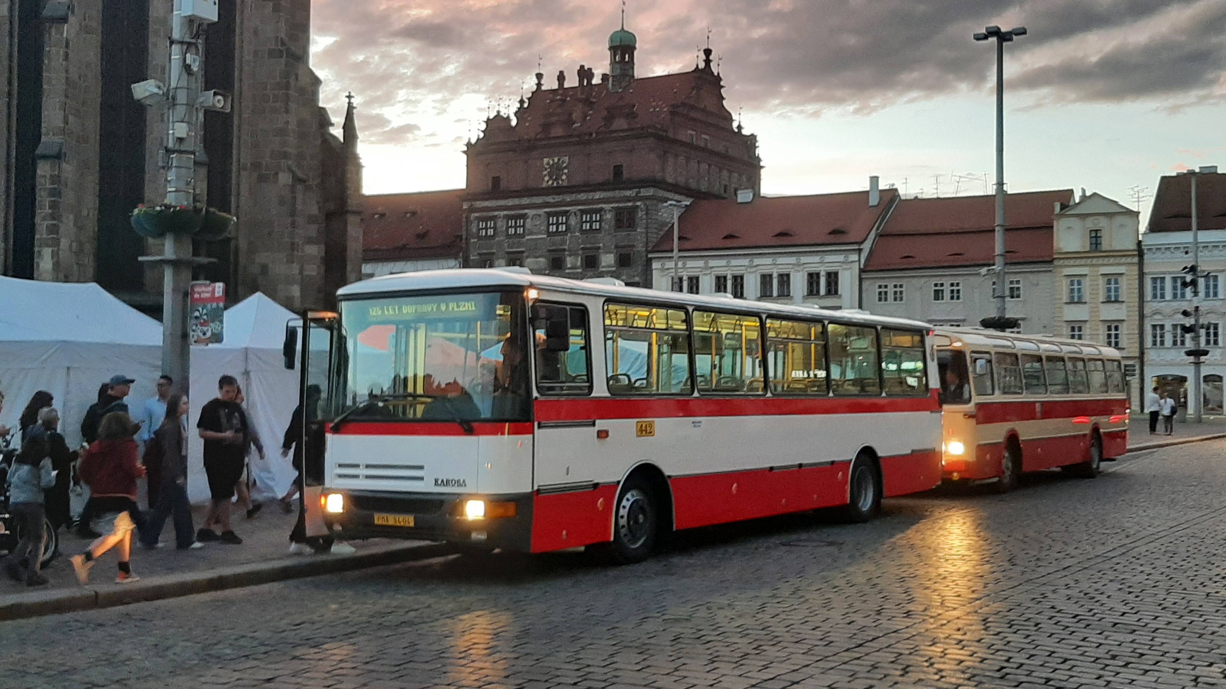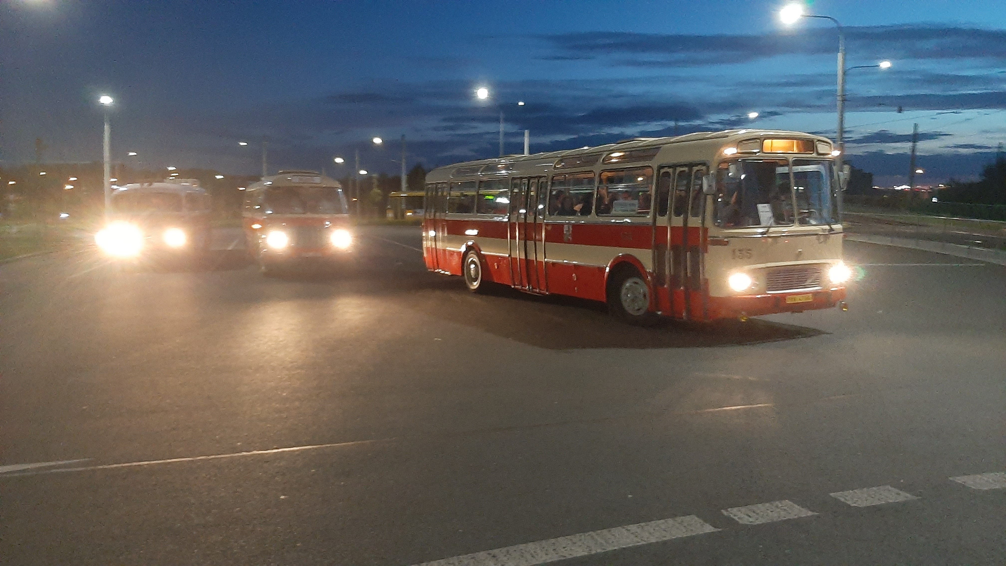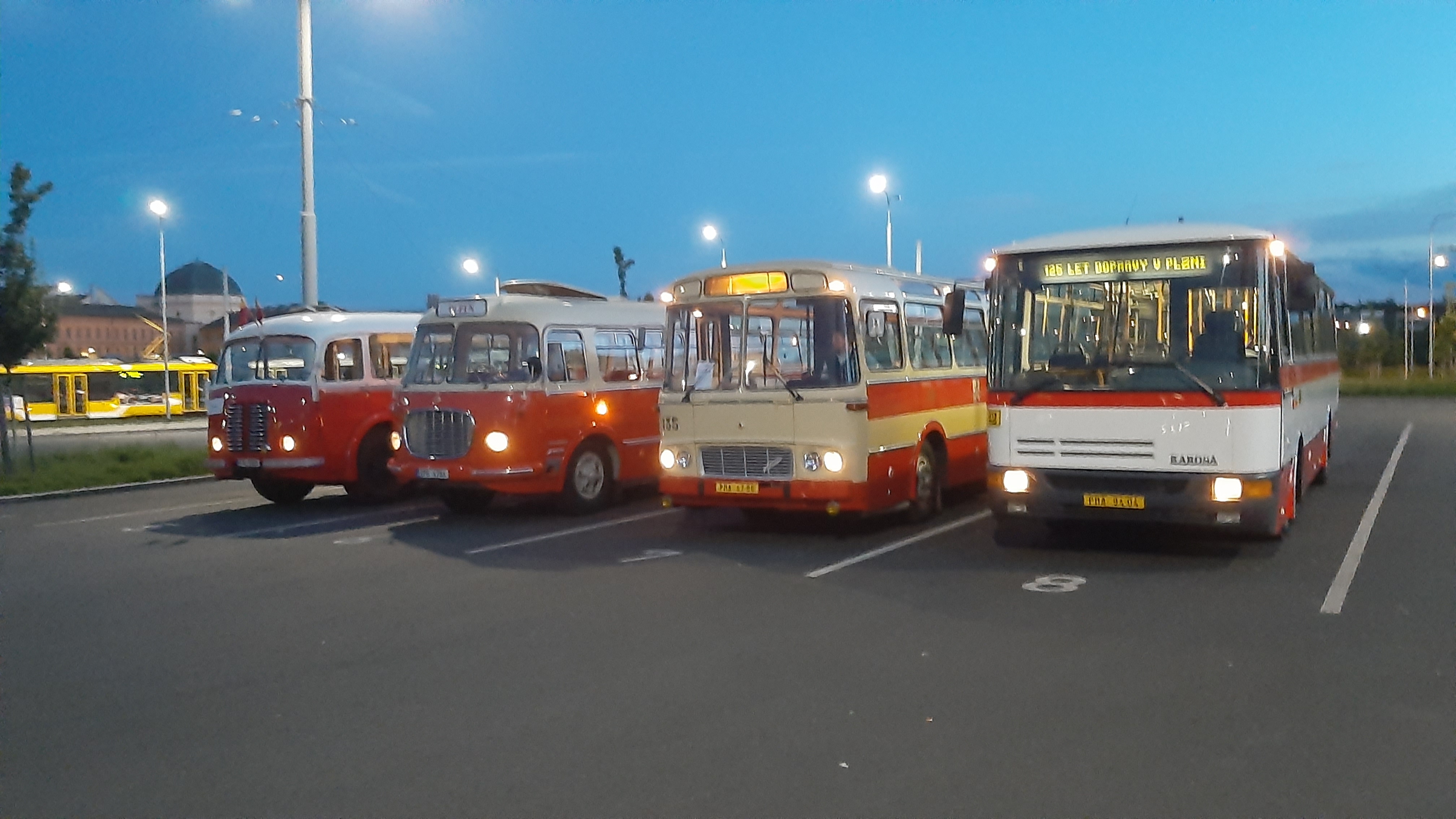 Večer pak vyjel z náměstí Republiky konvoj historických autobusů Škoda 706 RO, Škoda 706 RTO, Karosa ŠM 11 a Karosa B 931.