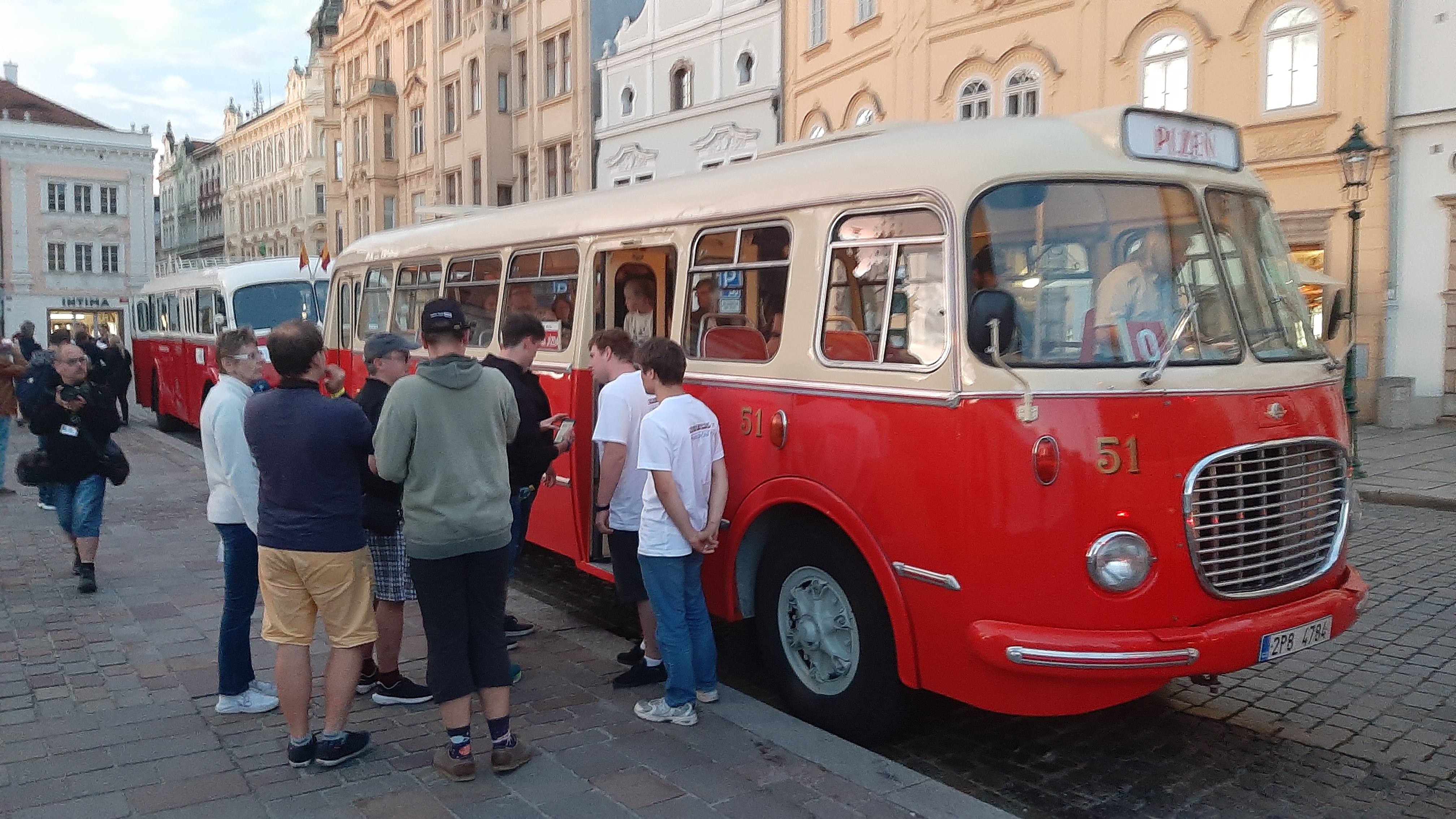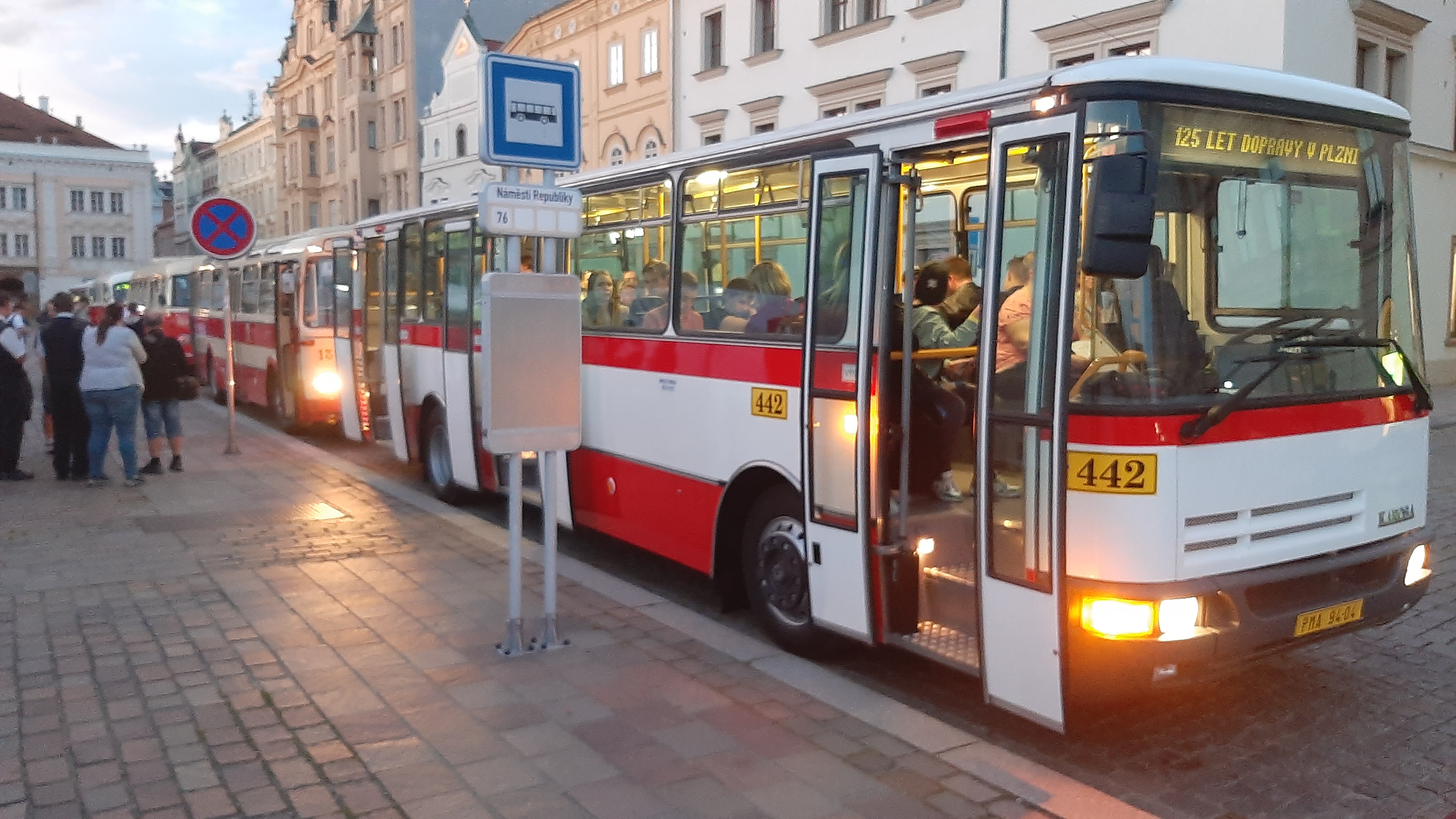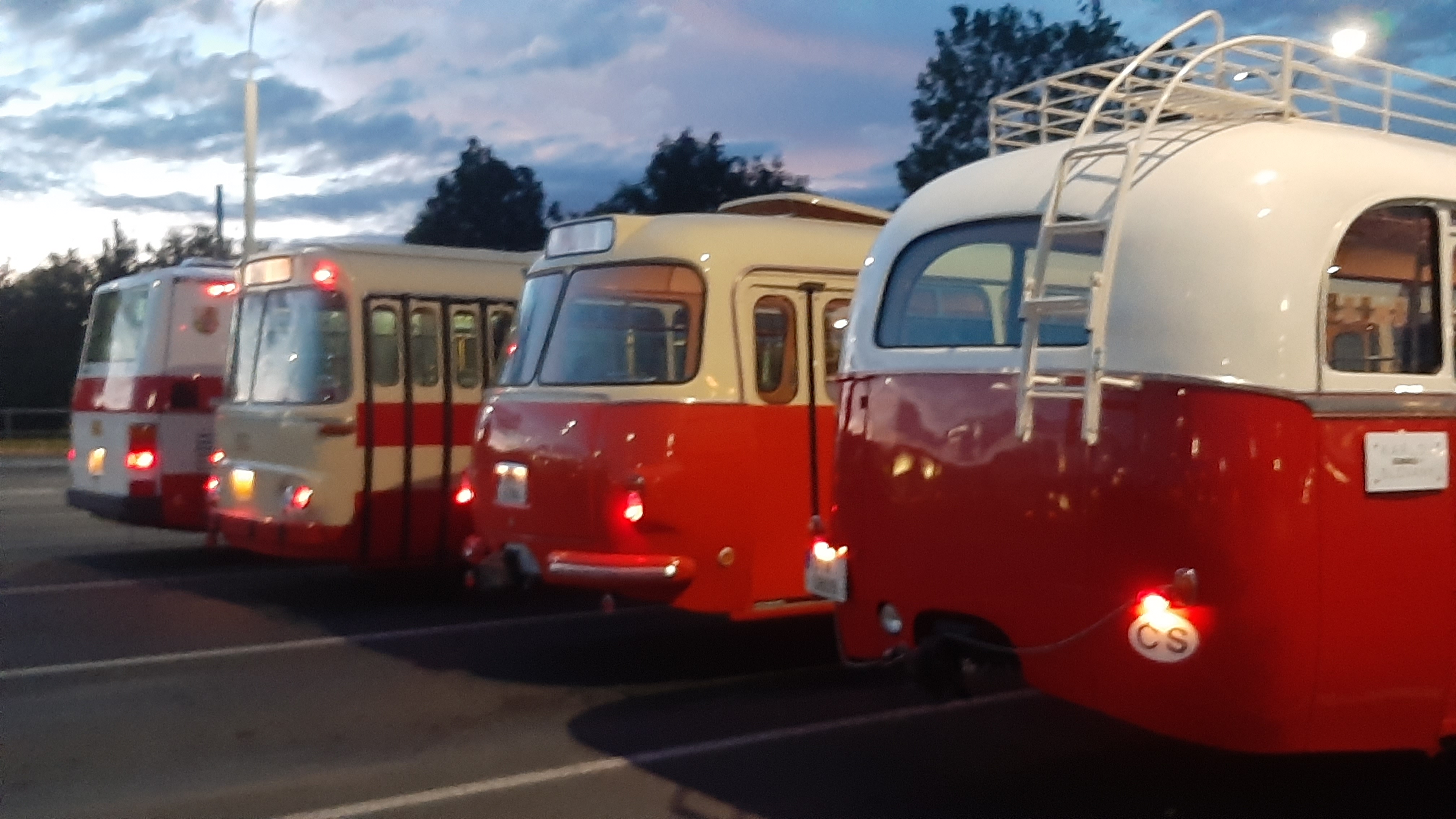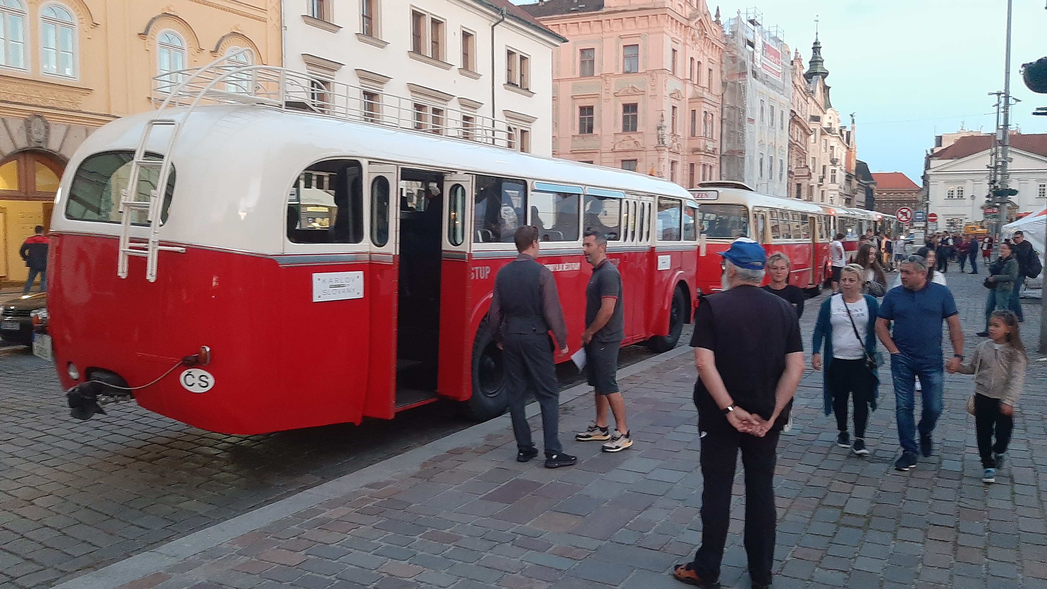 Večer pak vyjel z náměstí Republiky konvoj historických autobusů Škoda 706 RO, Škoda 706 RTO, Karosa ŠM 11 a Karosa B 931.