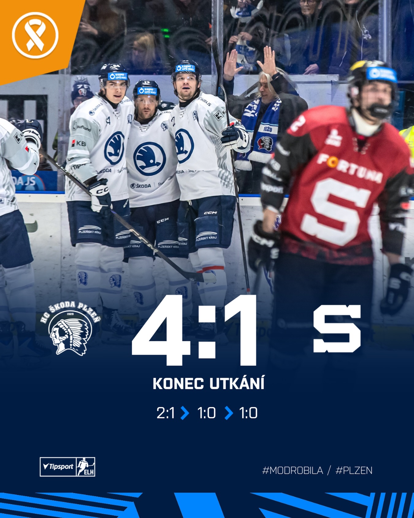 Hokejisté Plzně napravili zaváhání z Kladna, když v dohrávce 36. kola doma zaskočili Spartu a zvítězili 4:1. A to přesto, že od třetí minuty prohrávali. Ještě do první přestávky ale duel otočili Michal Teplý s Ville Petmanem, ve druhé třetině přidal třetí zásah Adam Měchura a stejný hráč pak uzavřel skóre v power-play hostů trefou 14 vteřin před koncem.