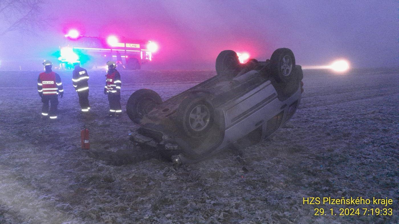 Hned několik nehod řešily dnes ráno a dopoledne záchranné složky v Plzeňském kraji. Na vině byla námraza, která se na silnicích objevovala.