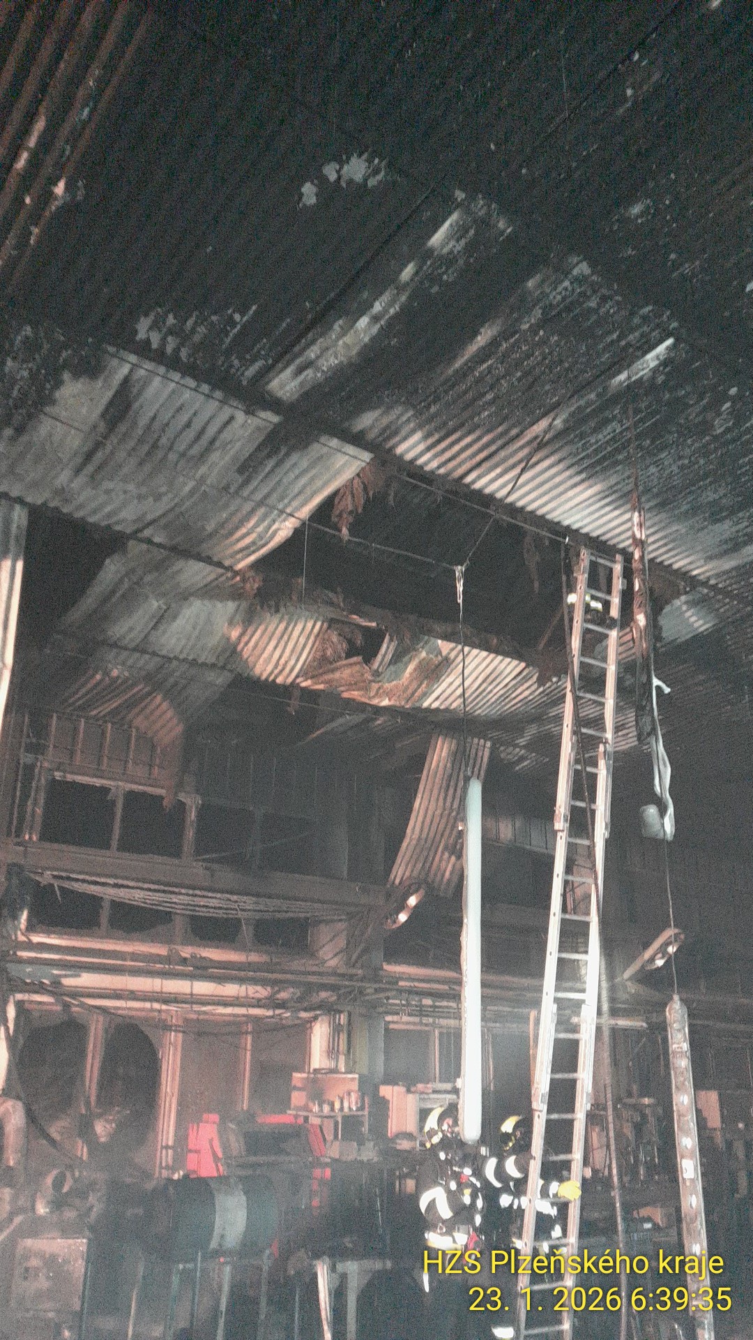 Průzkum na místě potvrdil, že ohnisko se nachází v horní části budovy. „Hořela zejména izolace v podstřešním prostoru. K hašení jsme nasadili dva vodní proudy 'C' a jeden vysokotlaký proud,“ uvedl mluvčí hasičů Petr Poncar.