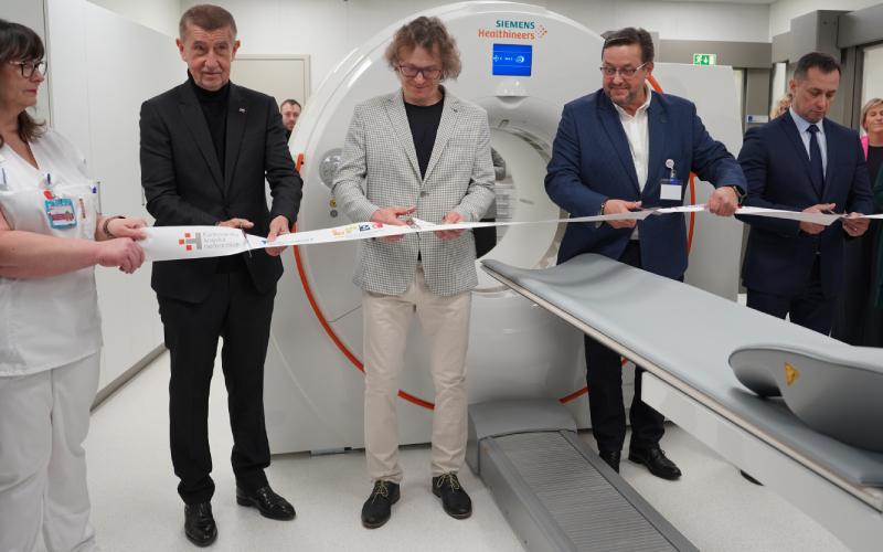 Premiér svou návštěvu zahájil v Karlovarské krajské nemocnici, kde se zúčastnil otevření nového PET centra. Jeho spuštění přináší zásadní posun v diagnostice nádorových onemocnění v regionu. Díky němu nebudou muset obyvatelé cestovat za vysoce specializovaným vyšetřením do vzdálených center mimo kraj. Novými prostory provedl předsedu vlády primář Oddělení nukleární medicíny a PET centra Jan Valeš. Následně proběhla prohlídka heliportu na střeše budovy A, který jako první v České republice disponuje autonomním hasicím systémem oscilační metodou.