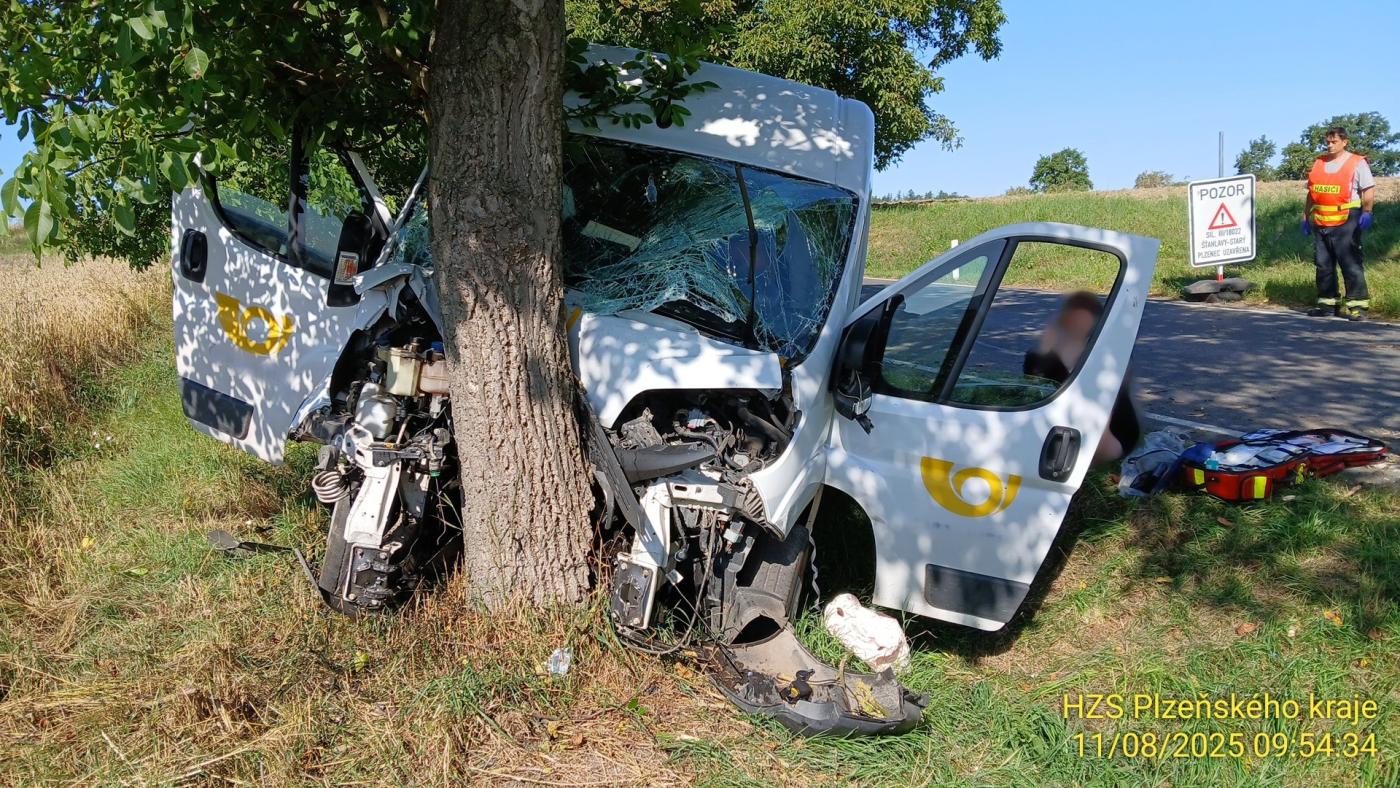 Středně těžké zranění břicha utrpěla jednadvacetiletá řidička poštovní dodávky, která dnes dopoledne havarovala se svým vozem na hlavním tahu I/19.