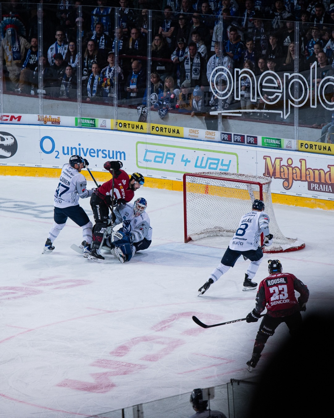 Ve třetí třetině se hrálo prakticky pouze na jednu branku. Plzni nešla upřít snaha, jenže Kořenář leckdy i s trochou štěstí odolával. Ve 49. minutě hráli domácí přesilovou hru a celé dvě minuty obléhali branku hostů, jen Zámorský vyslal na Kořenáře tři střely, jenže ani početní výhoda jim vytoužený gól nepřinesla. Pět minut před koncem mohl definitivně rozhodnout Špaček a krátce po něm i Kousal s Hykou. Dvě minuty před třetí sirénou indiáni odvolali Malíka, v power-play měl ještě obrovskou šanci Ville Petman a po něm i Merežko, smůlu domácích ale neprolomili.