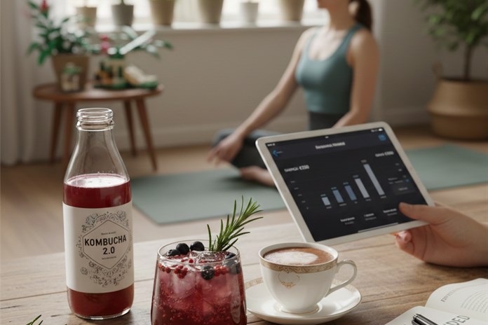 Domácí kombucha 2.0: Zapomeňte na octovou chuť. Zkuste ji doplnit čerstvým rozmarýnem, mraženými borůvkami nebo růžovým pepřem. Je to v podstatě živý koktejl pro váš mikrobiom.