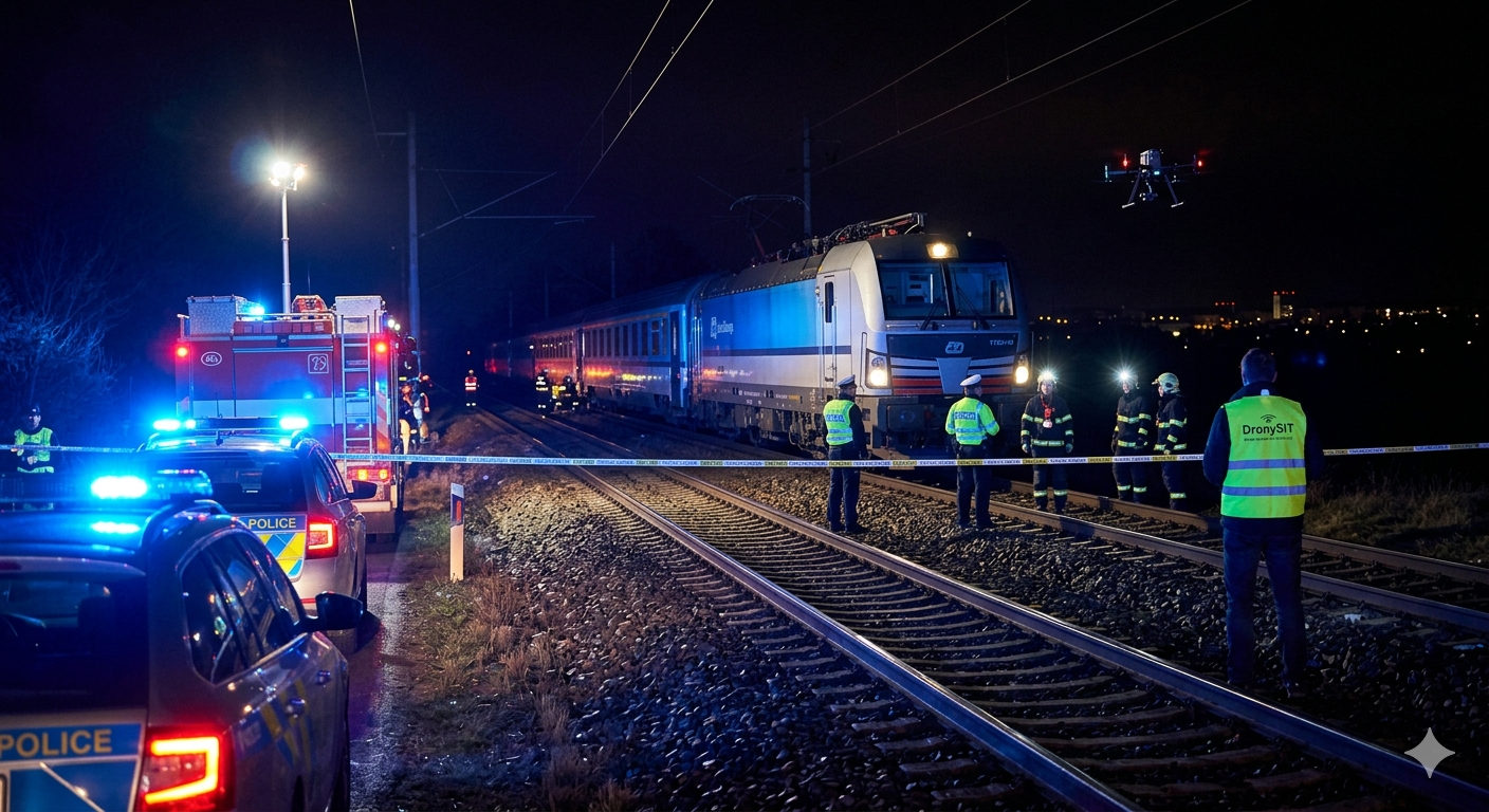 Kromě výjezdu kriminální policie a techniků byli do akce povoláni také specialisté z firmy DronySIT. Ti pomocí dronů s termovizí a vysokým rozlišením dokumentovali rozsáhlé místo činu a pomáhali s vyhledáváním ostatků v nepřehledném terénu kolem trati.