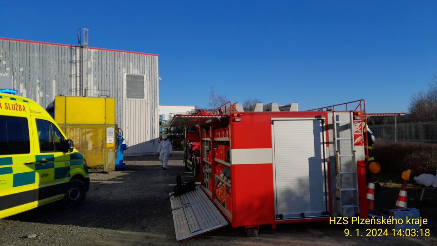 Aktualizováno 14:34 V jedné z hal v průmyslové zóně Nová Hospoda u Boru došlo dnes odpoledne k úniku isokianátu. Dva muže museli záchranáři transportovat do nemocnice.