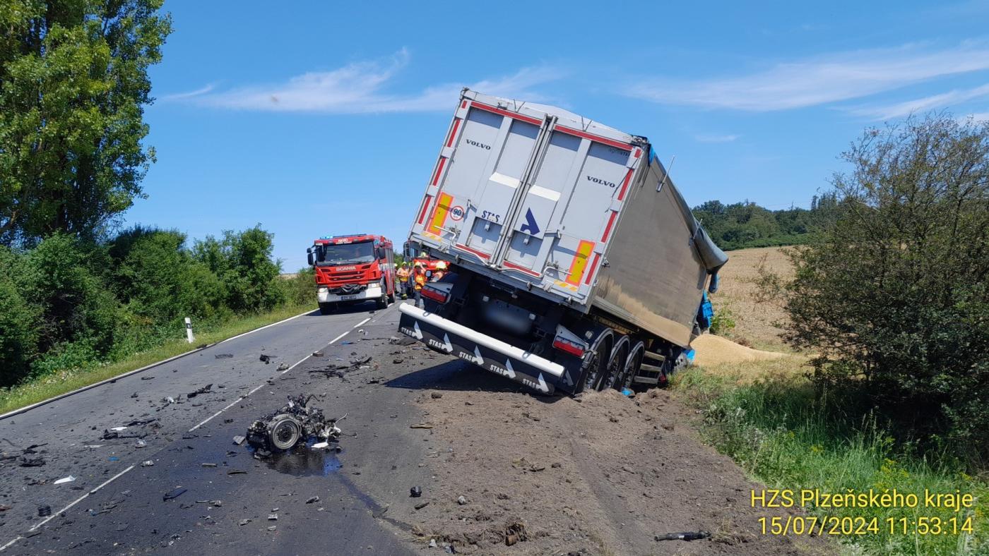 K nehodě osobního a nákladního auta vyjížděly záchranné složky před půl 12. "Jde o dopravní nehodu osobního automobilu a nákladního automobilu na hlavním tahu z Nepomuka na Plzeň silnici mezi Sečí a Vlčtejnem. Osobní vozidlo po nárazu začalo hořet," popsal mluvčí krajských hasičů Michal Holeček.