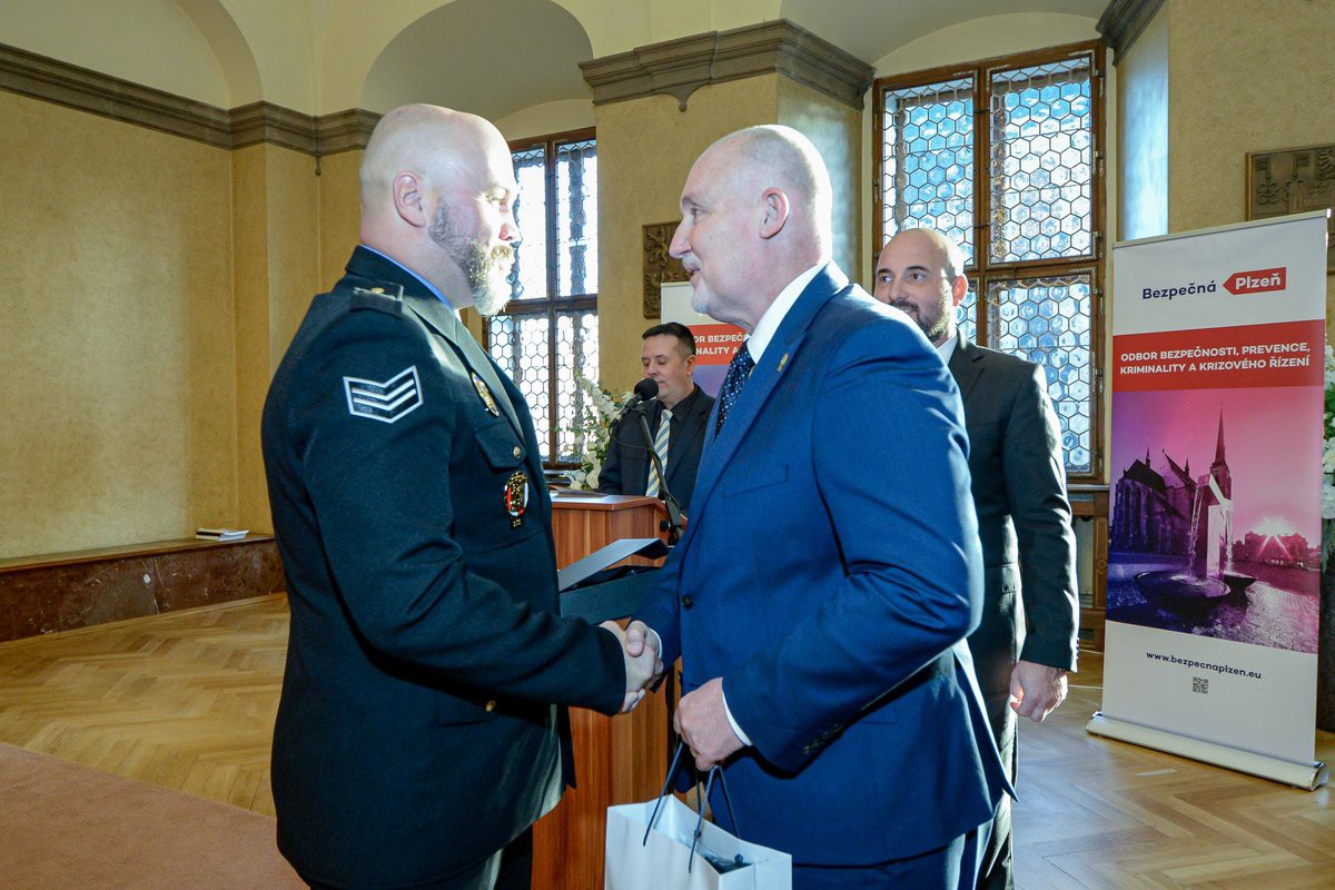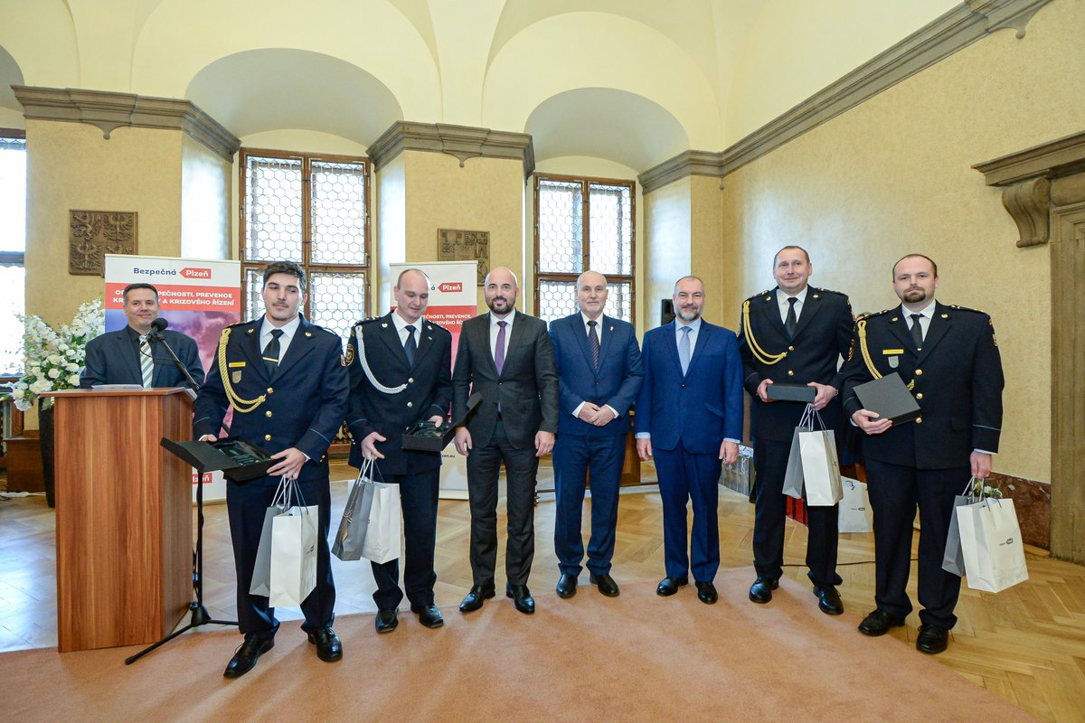 Celkem 22 hrdinů, které v letošním roce vykonaly mimořádné činy při záchraně lidského života a majetku, ocenilo město Plzeň. Pro ocenění si do obřadní síně na plzeňskou radnici přišli nejen záchranáři, policisté a hasiči, ale také plzeňští strážníci či občané.