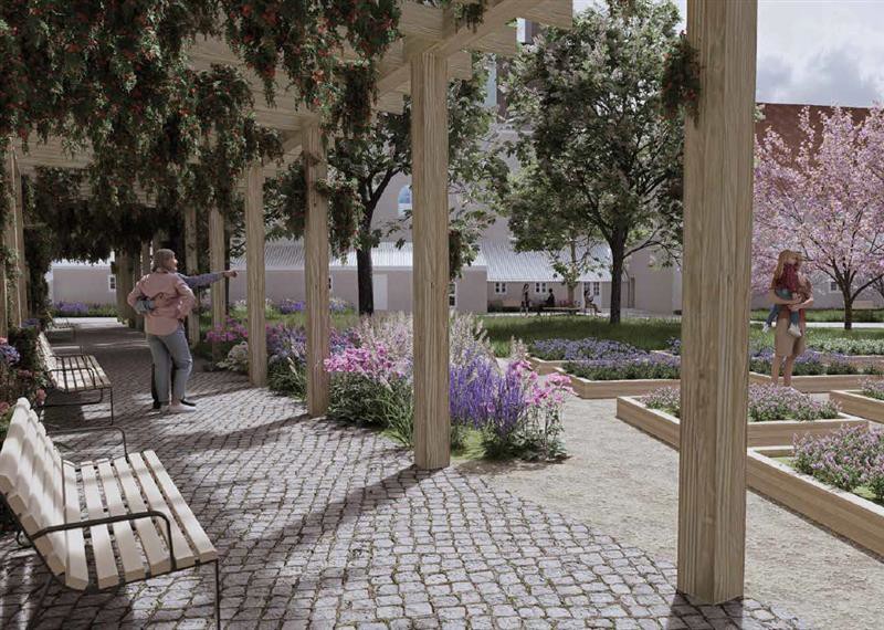 „Celý areál bývalých klášterních zahrad je rozdělen na dvě části – rekreační západní a provozní východní. Západní část se promění v prostor s výraznou krajinářskou a kulturně-historickou hodnotou, který se inspiruje principy barokních klášterních zahrad. Návrh zahrnuje výsadbu zeleně, odstranění asfaltové plochy parkoviště nebo přestavbu stávající budovy garáží na víceúčelový objekt,“ doplnil mluvčí. Východní část pak projde reorganizací provozních ploch, úpravou parkování a doplněním vegetačních prvků. Kromě estetických benefitů pomohou i se zasakováním dešťových vod.